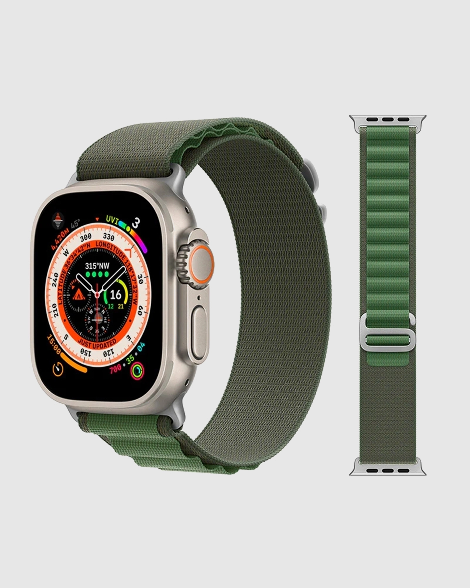 Elevate your Apple Watch experience with our Alpine Loop Band in Green. Crafted from high-quality, durable materials, this band is not only designed to endure the elements but also offers a stylish, comfortable fit for any wrist. The unique loop design draws inspiration from the rugged beauty of nature, making it perfect for adventurous spirits and urban explorers alike. This versatile green hue seamlessly complements a variety of outfits, adding a touch of rustic elegance to your everyday look. Compatible with Apple Watch Series 1 through 8, SE, and Ultra models, the Alpine Loop Band is available in two sizes to ensure a secure fit for wrist sizes ranging from 140mm to 220mm. Whether you’re trekking the great outdoors or navigating the cityscape, this band is your ideal companion for an active lifestyle. Experience the perfect blend of style and performance with the Alpine Loop Band for Apple Watch in Green today!