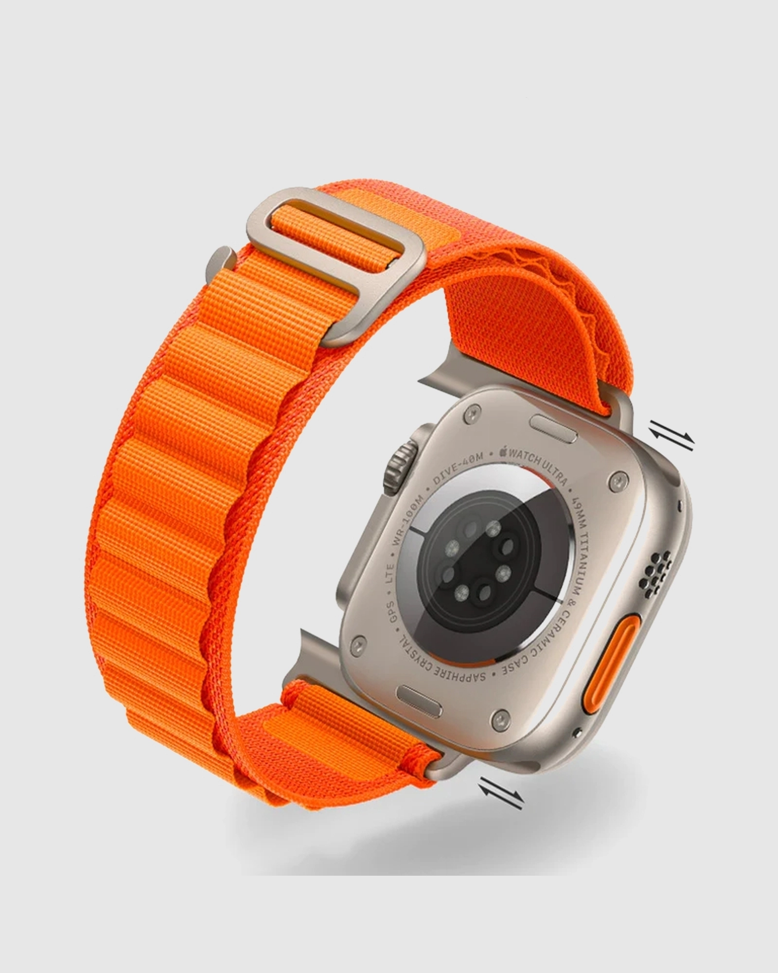 Elevate your Apple Watch experience with our Alpine Loop Band in vibrant orange. Crafted from high-quality materials, this band not only exudes style but is also engineered for durability against the elements, ensuring a comfortable and secure fit. Its unique loop design, inspired by the rugged allure of the great outdoors, makes it perfect for any adventure. Whether you’re hiking through nature or navigating city streets, this band will seamlessly enhance your Apple Watch, adding a touch of rugged elegance to your outfit. With compatibility across a range of Apple Watch models, including Series 1 to 8 and SE/Ultra, the Alpine Loop Band is perfect for wrists sized 140-220mm, catering to both women and men. Make a statement while enjoying the freedom and flexibility that comes with this versatile accessory, designed for your active lifestyle. Experience the perfect fusion of comfort, style, and durability with this essential Apple Watch band.