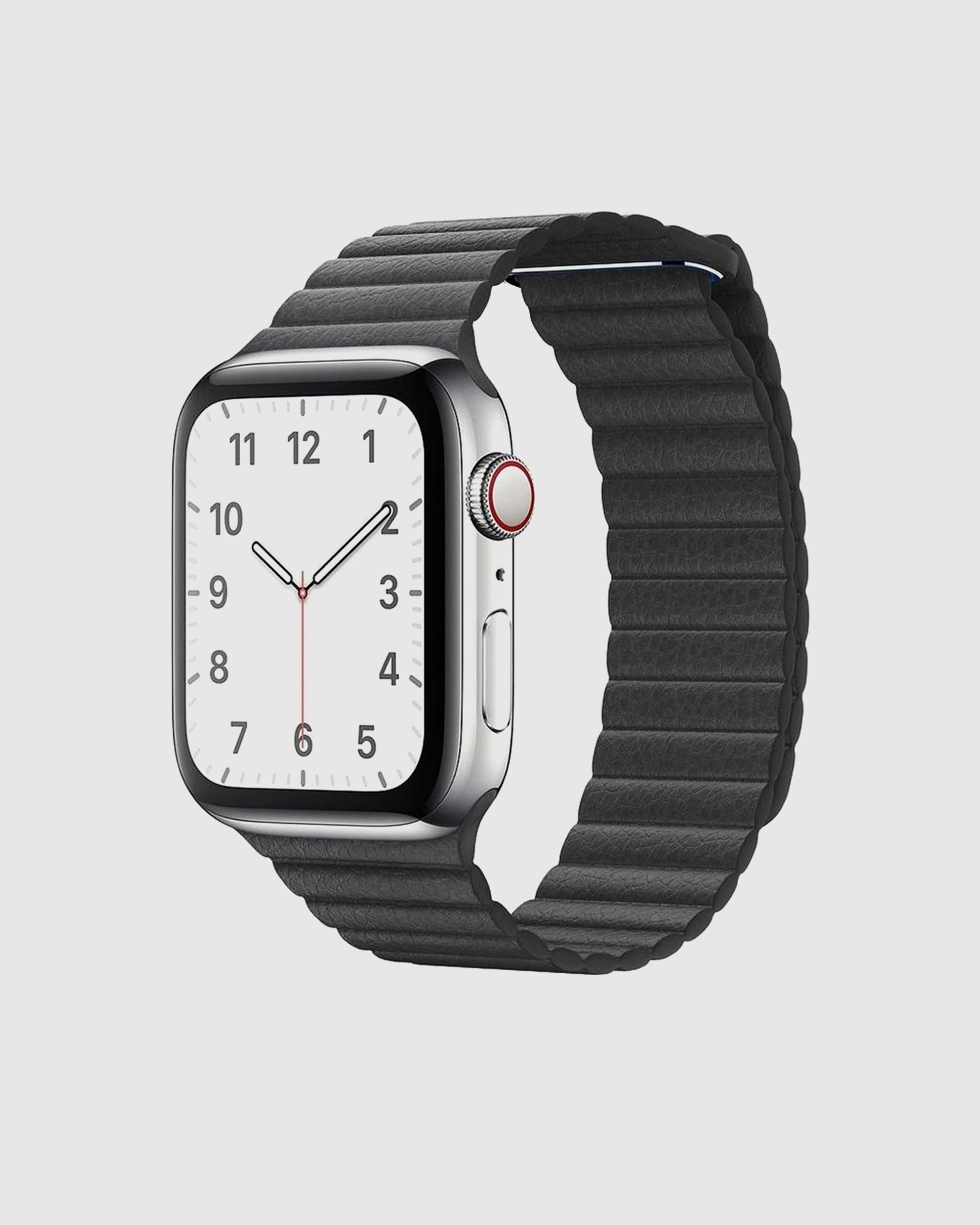 Elevate your Apple Watch experience with the Black Leather Loop. Hand-crafted from premium quality materials, this band combines durability with elegance. The soft, quilted leather-like texture feels luxurious on your skin, making it perfect for everyday wear. Hidden magnets ensure a flawless fit, allowing you to easily wrap it around your wrist for a sleek and stylish appearance. Designed for those who appreciate both form and function, the Black Leather Loop is a perfect blend of comfort and sophistication. It not only enhances the look of your watch but also offers the practicality you need in a smartwatch band. Experience the ultimate in style and convenience with this stunning accessory for your Apple Watch, available now for just $59.