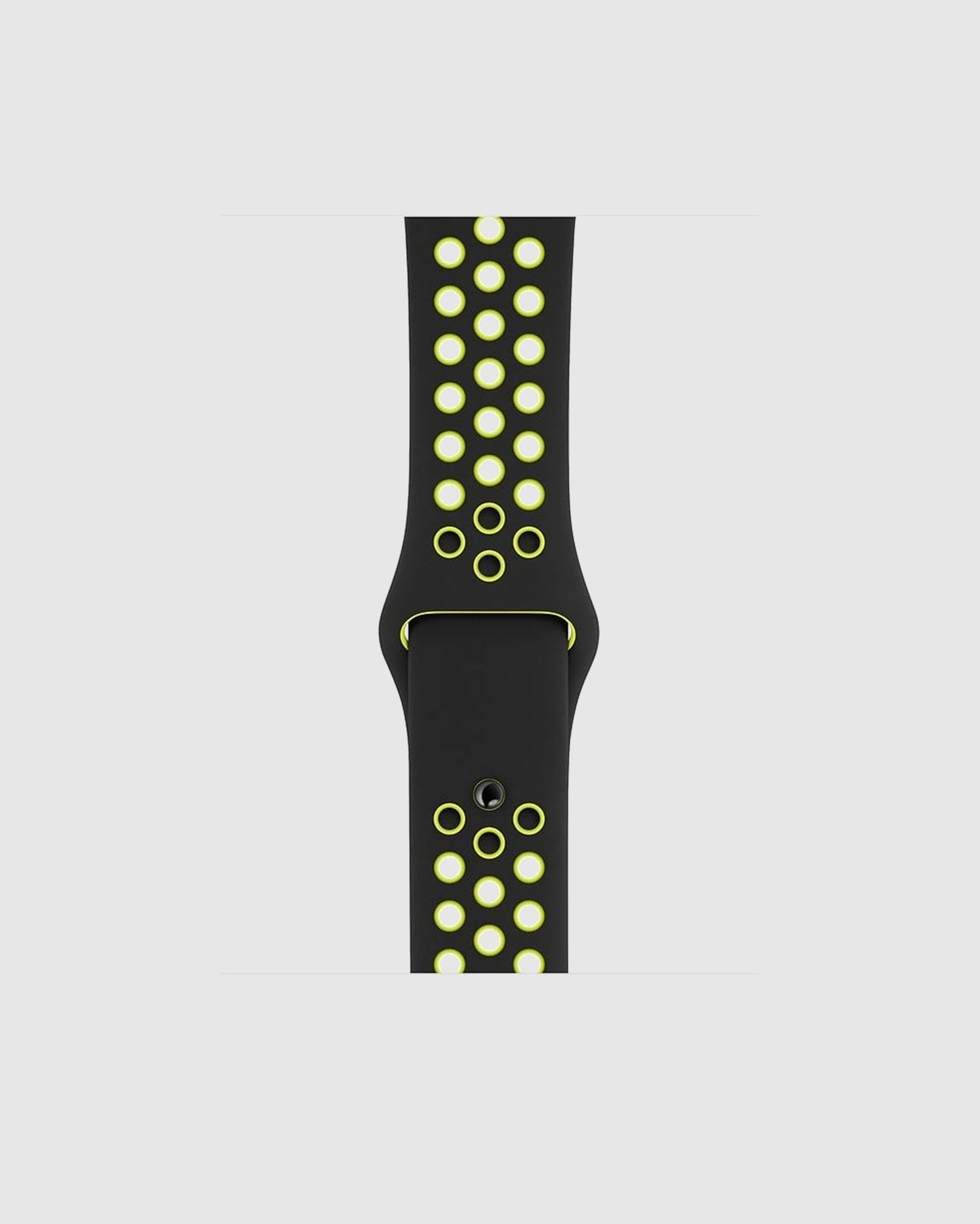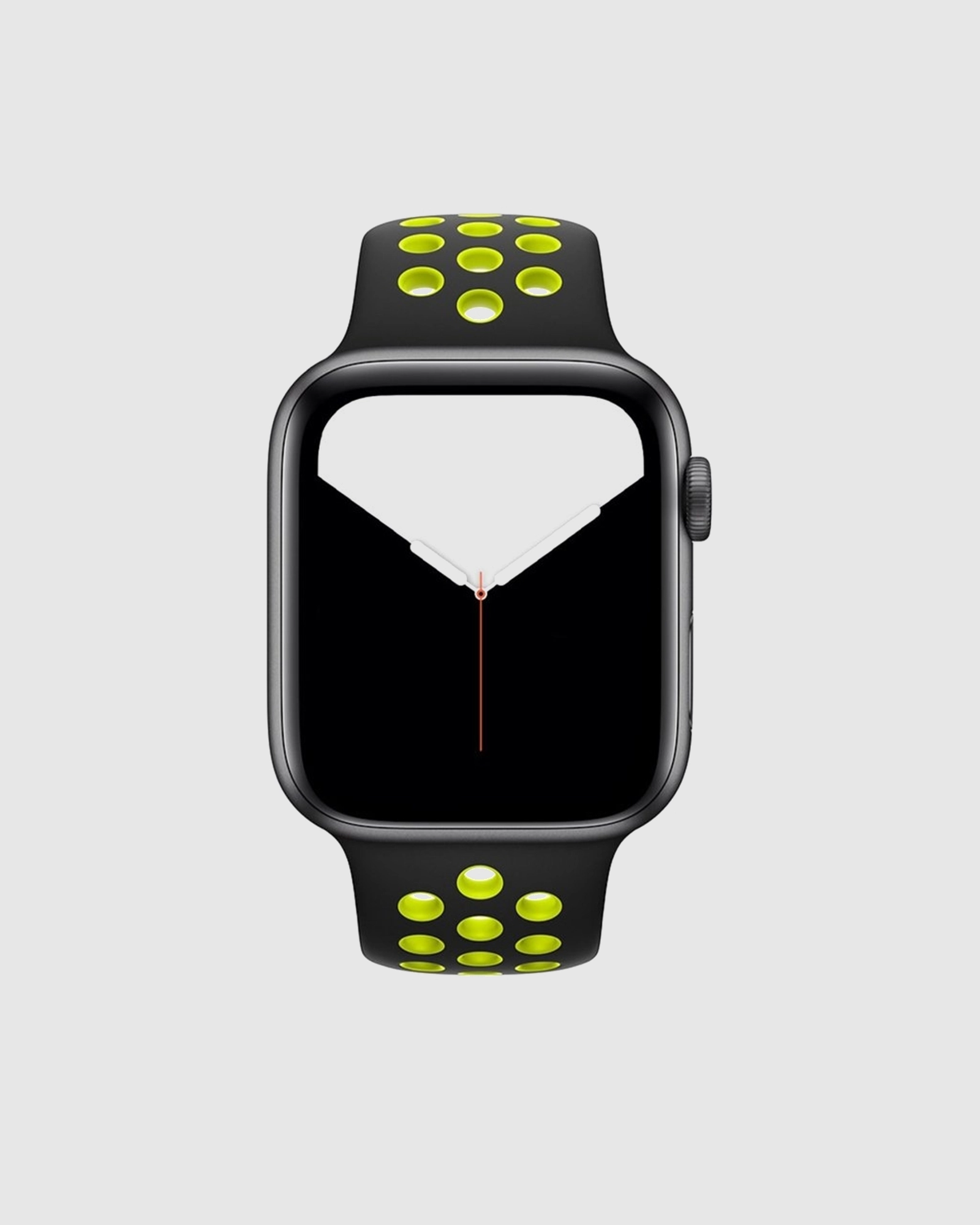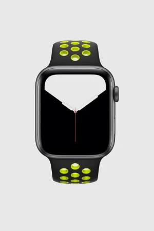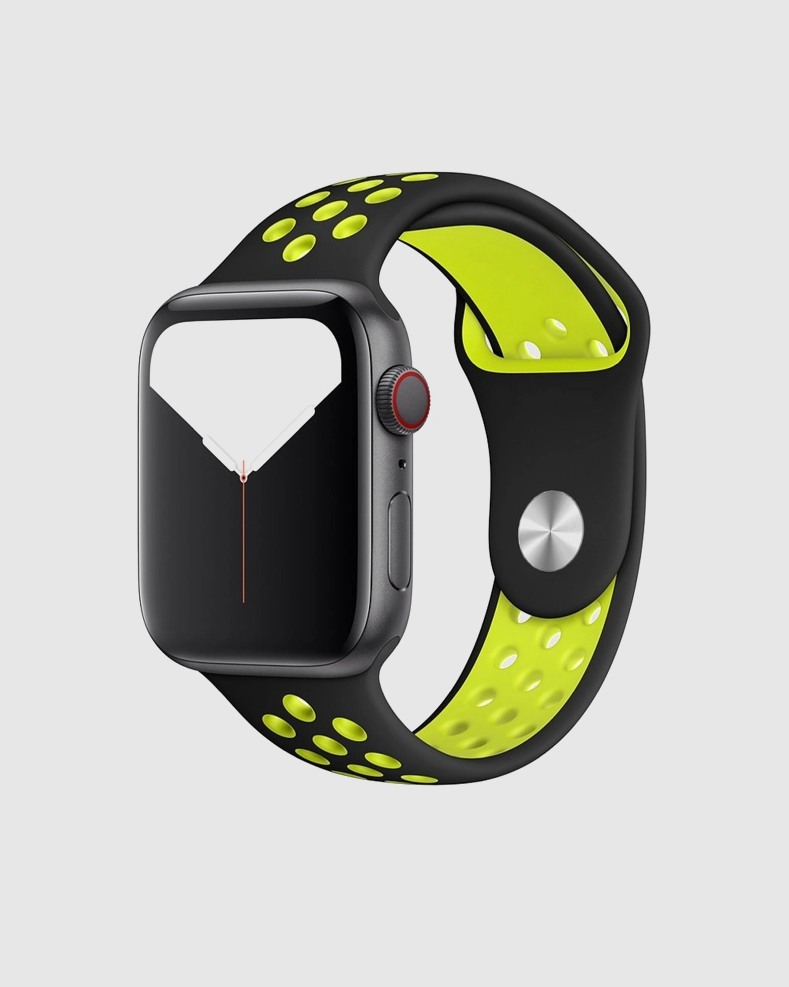 Elevate your Apple Watch with the Black/Volt Sport Band Active, designed for both style and performance. Crafted from a custom high-performance fluoroelastomer, this band promises durability and flexibility without sacrificing comfort. Its innovative compression-moulded perforations enhance breathability, making it the perfect companion for your active lifestyle. The smooth and dense material drapes elegantly across your wrist, ensuring a snug and comfortable fit. The innovative pin-and-tuck closure adds a sleek finish, while colour contrast enhances your look. Available in a range of sizes to fit wrists from 125mm to 210mm, you can choose the perfect fit for your Apple Watch. Whether you’re at the gym, on a run, or simply out and about, this band is designed to keep up with you. Experience unparalleled comfort and style with the Black/Volt Sport Band Active for Apple Watch perfect for any occasion.