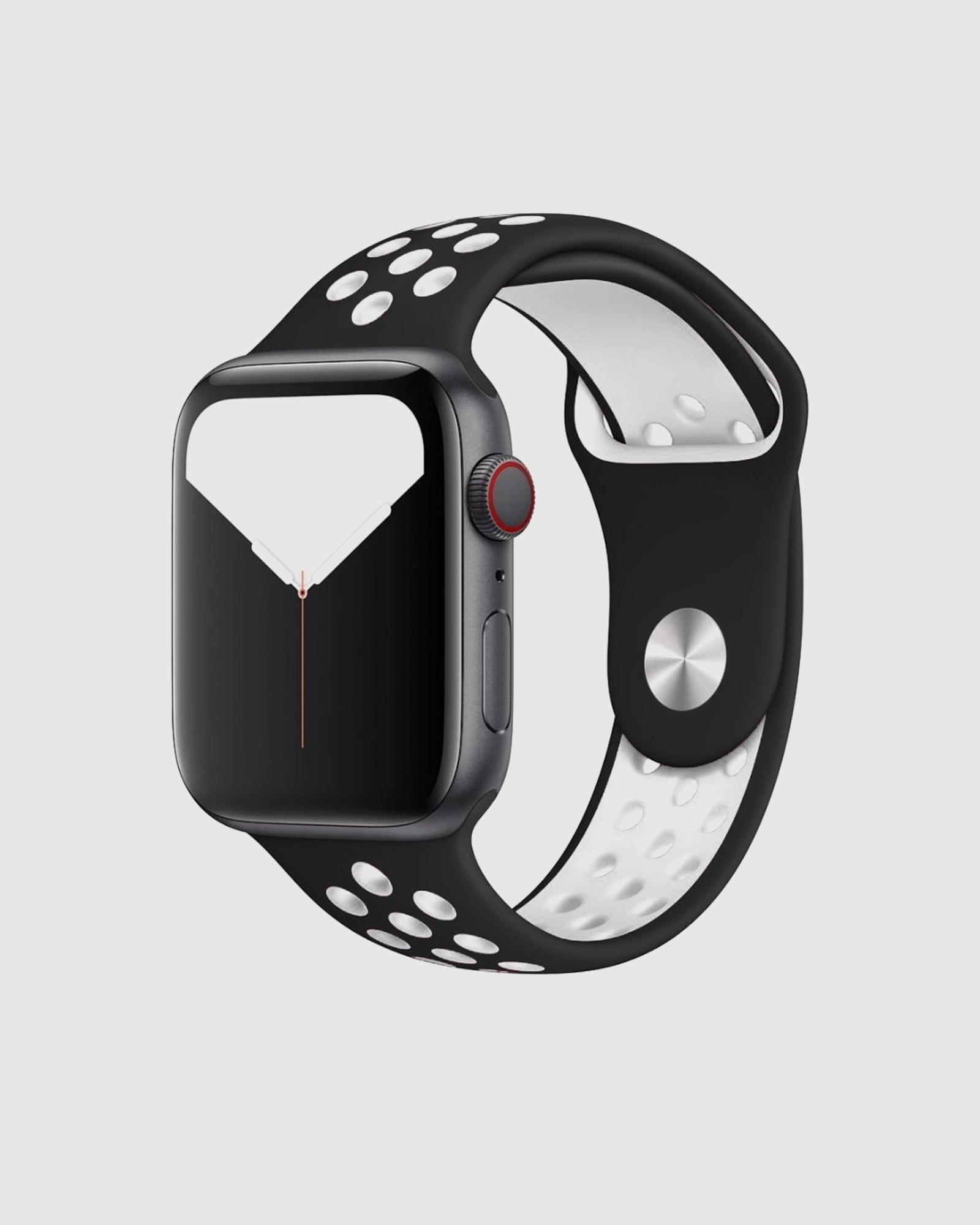 Elevate your Apple Watch experience with the Black/White Sport Band Active. Crafted from a custom-developed high-performance fluoroelastomer, this band features compression-moulded perforations for enhanced breathability and comfort. The strong yet soft material drapes elegantly across your wrist, ensuring a snug fit thanks to the innovative pin-and-tuck closure. Ideal for those living an active lifestyle, this band is designed to withstand your toughest workouts while remaining stylish. Available in multiple sizes, it provides the perfect fit for wrists ranging from 125mm to 210mm. Transform your wearable technology with this versatile band, ideal for both sport and daily wear. Upgrade your Apple Watch’s appearance without compromising on comfort and functionalityperfect for every occasion!