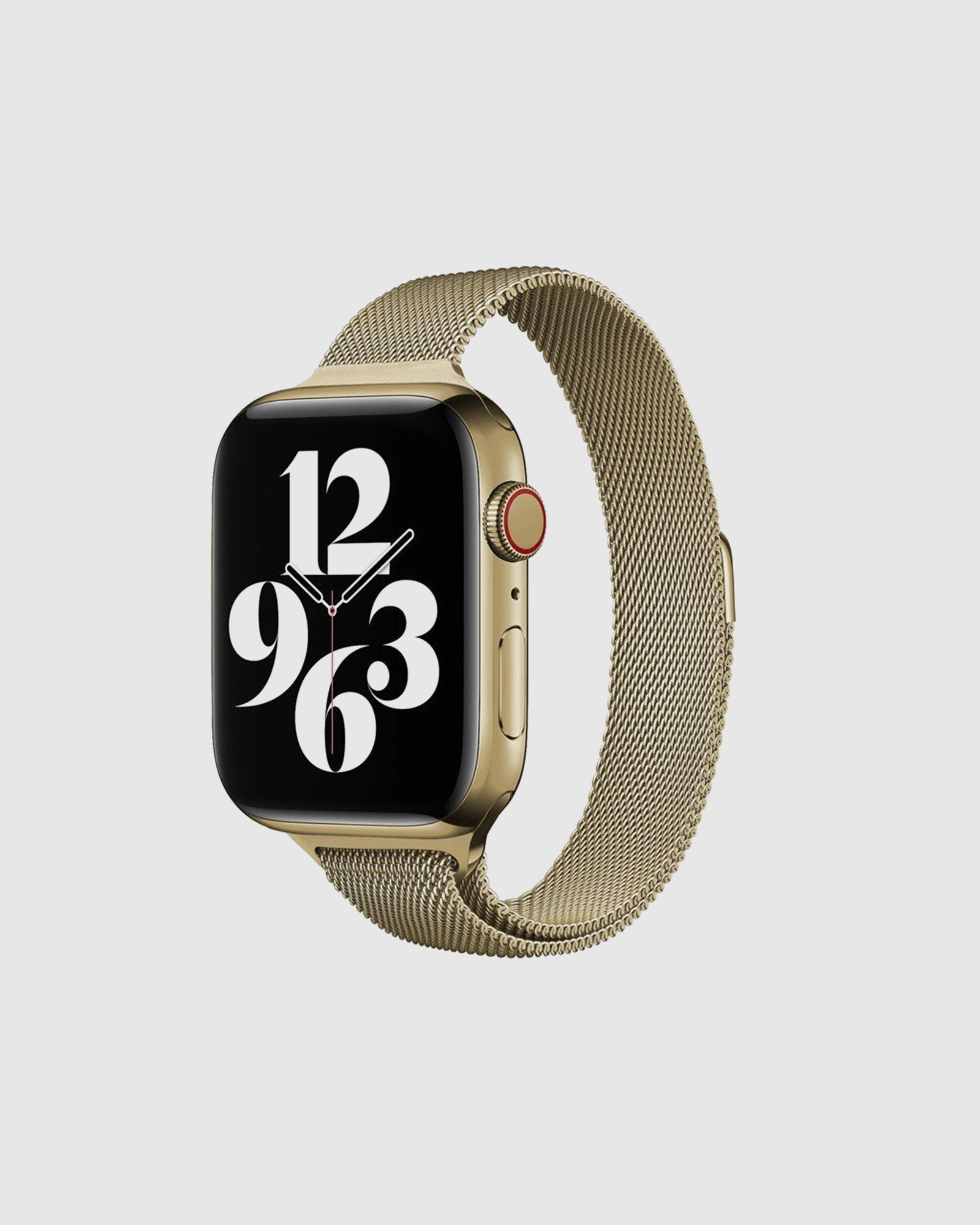 Elevate your Apple Watch experience with the Champagne Light Gold Aurora Slim Milanese Band. This band is meticulously crafted from a smooth and flexible Milanese steel mesh, ensuring maximum comfort and an effortless adjustable fit for all-day wear. The stunning champagne light gold hue adds an elegant touch to your wrist, making it perfect for any occasion, whether casual or formal. Designed to complement the sleek aesthetic of your Apple Watch, the band is not only fashionable but also durable, making it an ideal choice for those who appreciate style and functionality. Whether youre hitting the gym or enjoying a night out, this slim Milanese band is versatile enough to suit your needs. Priced at just $39.95, make your Apple Watch a true reflection of your personal style with this exquisite band that seamlessly blends sophistication and comfort.