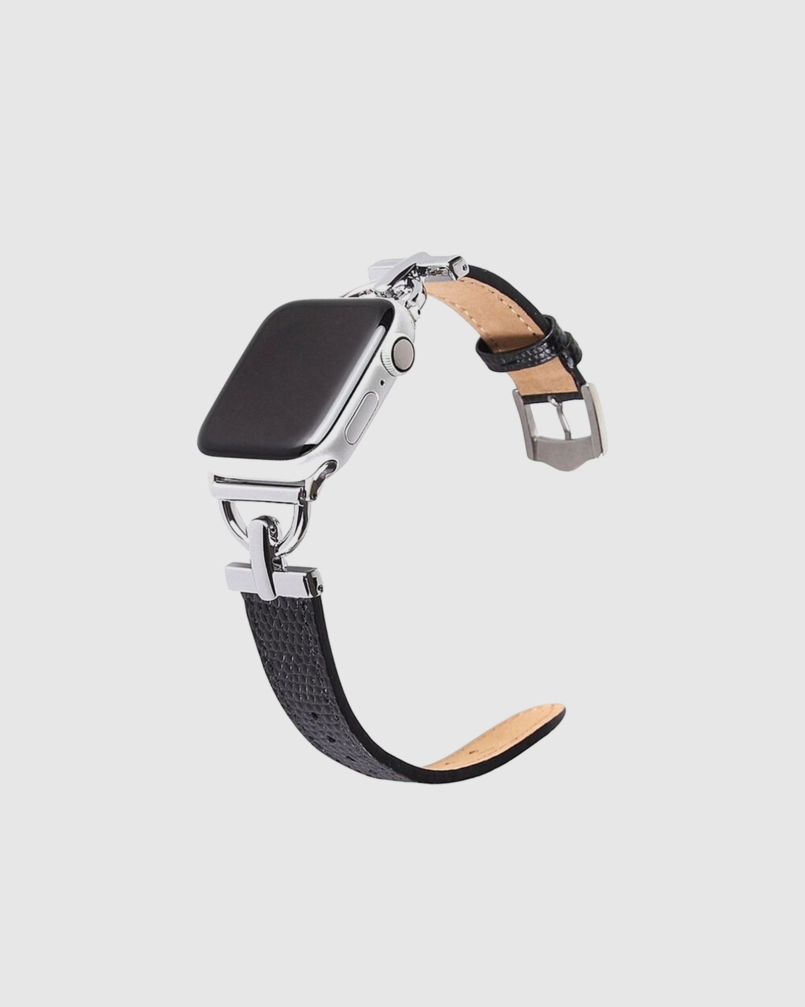 Elevate your style with the Dakota Hybrid Steel Leather Band for Apple Watch. Crafted with a sleek stainless steel frame and luxurious black leather, this band seamlessly combines durability with elegance. Designed for comfort and versatility, it’s the perfect accessory for any occasion, be it a formal event or a casual outing. The adjustable fit ensures it will suit various wrist sizes beautifully. Compatible with all Apple Watch models, this band adds a touch of sophistication to your tech. Plus, the distinctive silver and black colour scheme ensures it stands out while remaining chic and timeless. Keep your Apple Watch secure while making a bold fashion statement with this stunning band. Upgrade your wrist game today with the Dakota Hybrid Steel Leather Band!