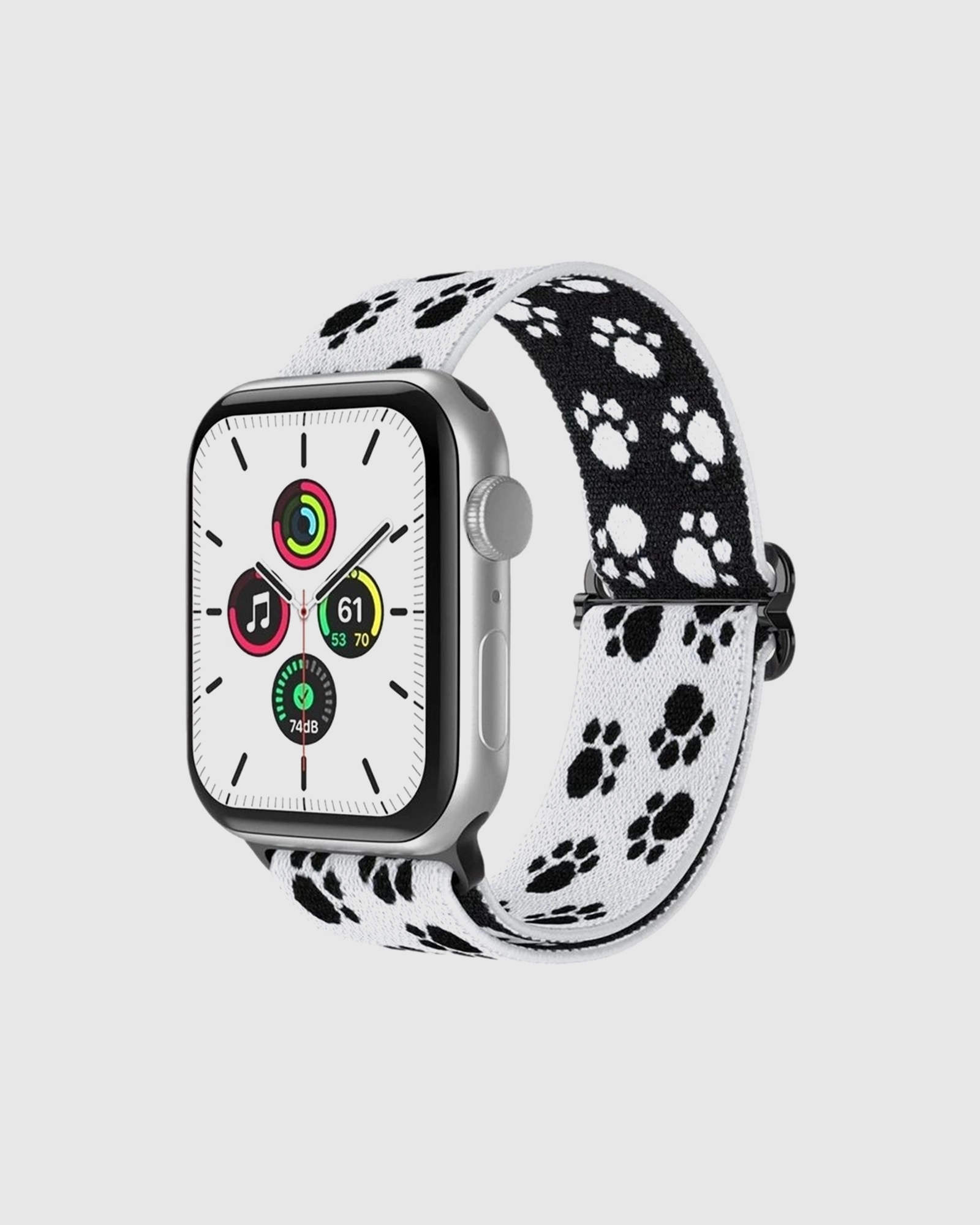 Show off your love for dogs with the Doggie Paw Elastic Loop Band for Apple Watch, featuring a comfortable fit and fun design.