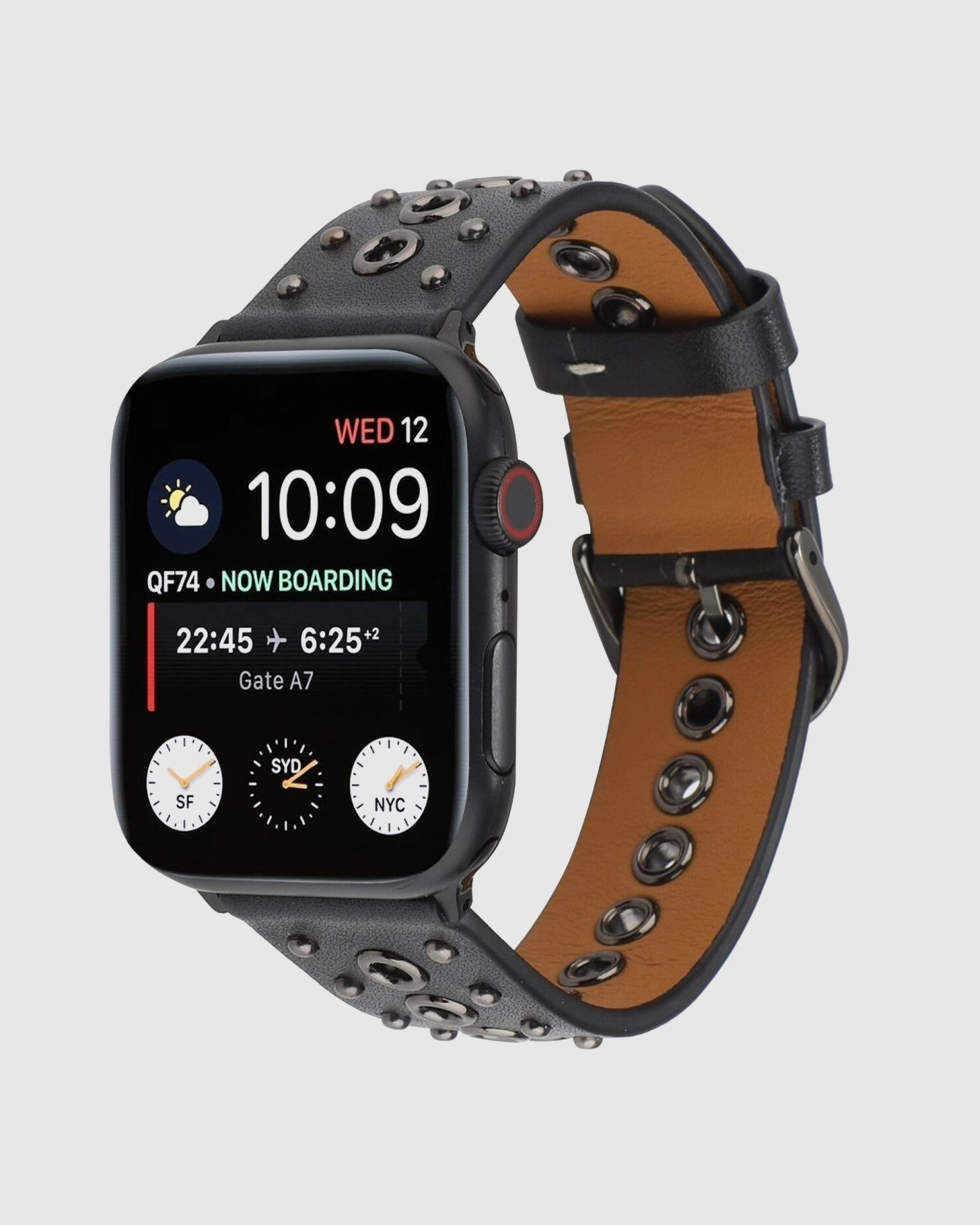 Elevate your Apple Watch with the stunning Elektra Leather Band featuring bold black rivets. Crafted from premium leather, this band combines style and durability, ensuring a comfortable fit on your wrist. The striking black colour offers a sleek and modern look, perfect for both casual and formal occasions. Designed for easy installation on any Apple Watch model, this band not only enhances your timepiece but also showcases your unique style. Whether youre on a work call, hitting the gym, or enjoying a night out, the Elektra Leather Band is your go-to accessory for both functionality and flair. With a versatile design, this watch band effortlessly transitions from day to night, making it an essential addition to your wardrobe. Upgrade your wrist game today with the Elektra Leather Band with Black Rivets and make a bold statement wherever you go. At just $59.95, it’s a chic investment that complements your lifestyle while ensuring your watch is adorned with sophistication and elegance.