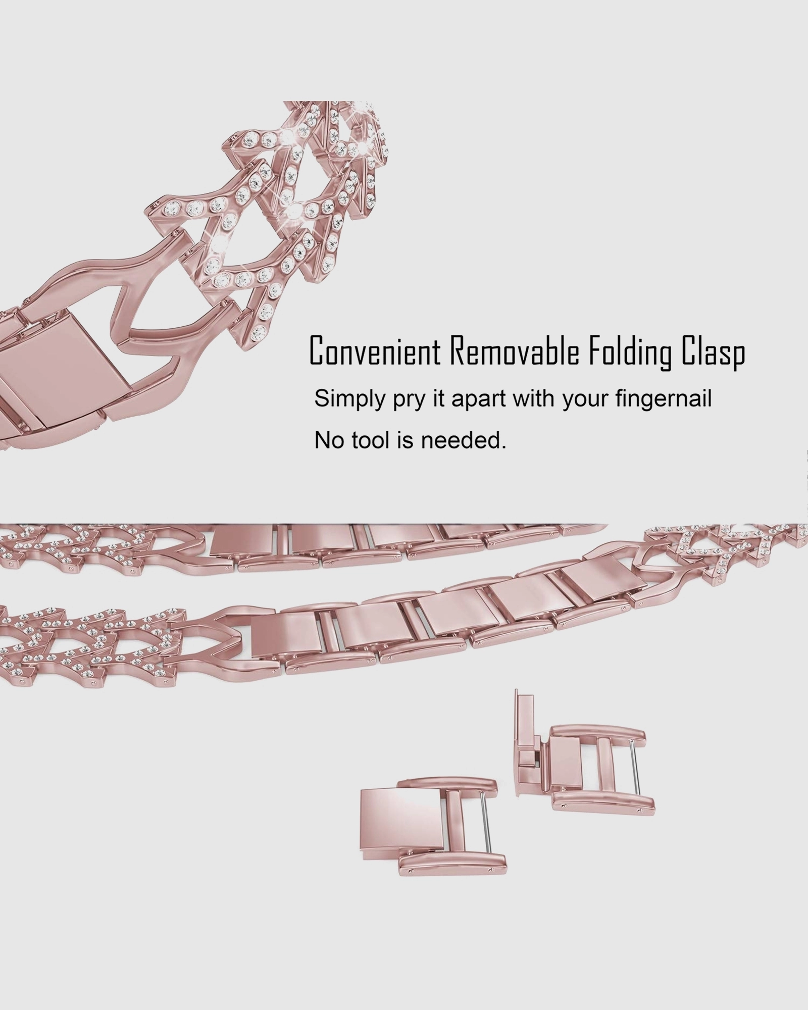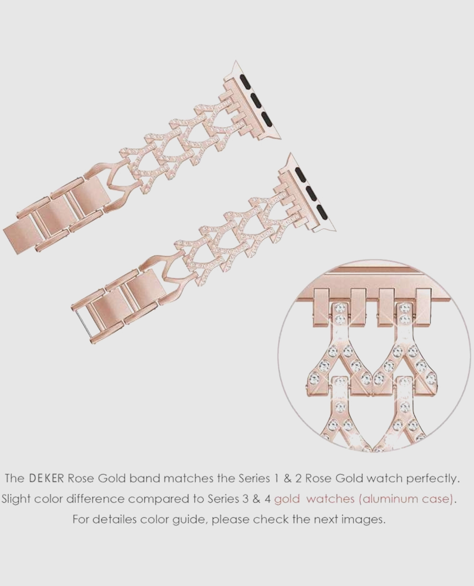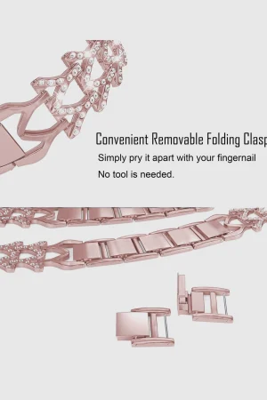 Elevate your look with the Genevieve Bracelet Band for Apple Watch in stunning rose gold. This exquisite band combines comfort with an elegant design, making it the perfect accessory for any occasion. Crafted from high-quality stainless steel, its strong and durable link-bracelet style ensures your Apple Watch not only stands out but also remains securely fastened on your wrist. Ideal for casual outings or formal events, the Genevieve Bracelet Band allows you to express your unique style effortlessly. With adjustable sizing, it fits a range of wrist sizes, ensuring a comfortable wear for everyone. Please note, this band is not designed for water exposurecare for it by wiping with a cloth immediately after moisture contact to maintain its pristine condition. Upgrade your Apple Watch today and make a polished statement wherever you go.