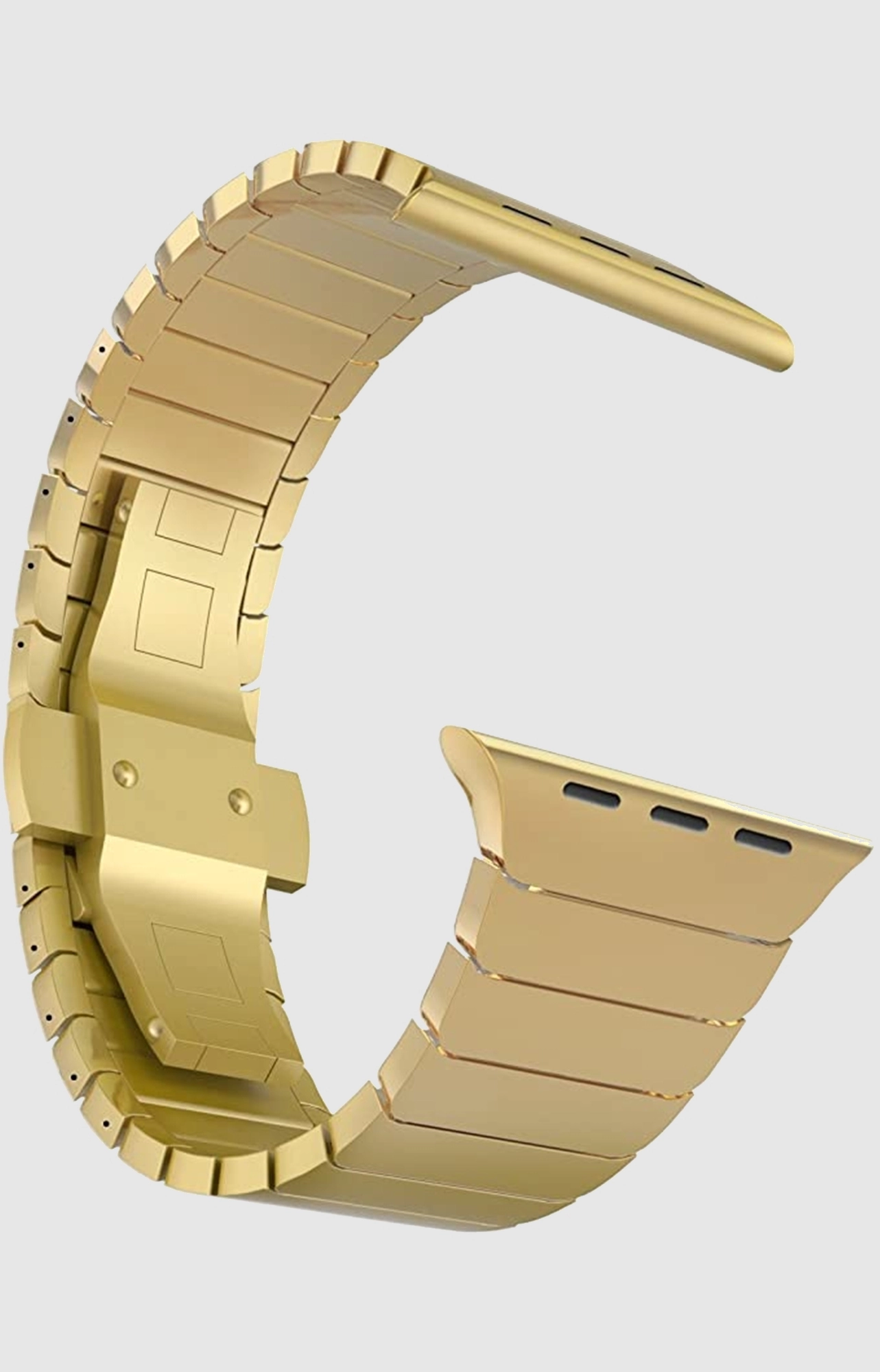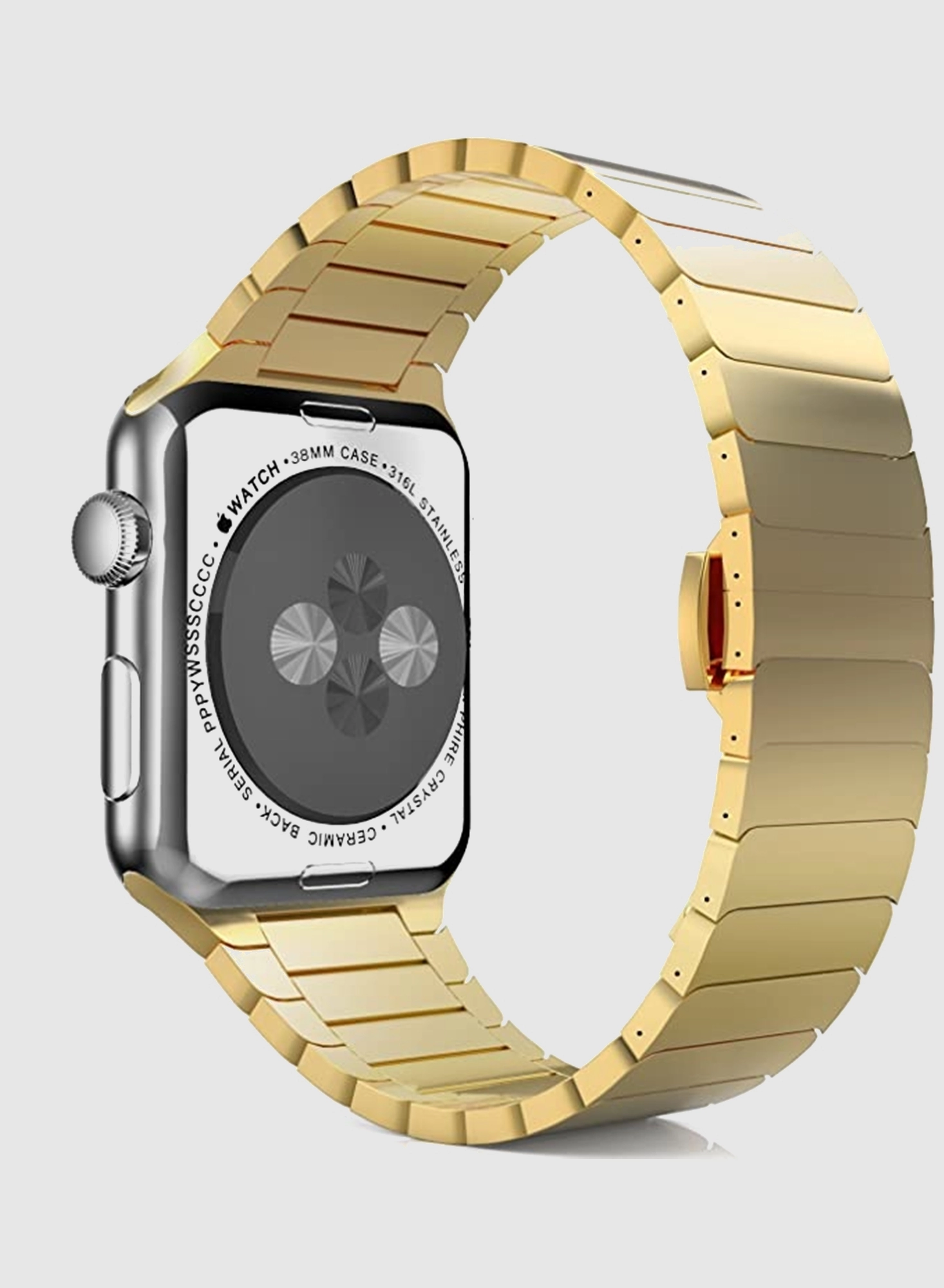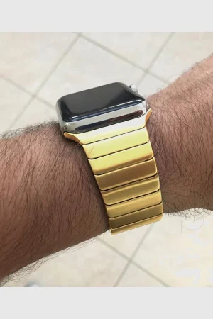 Elevate your Apple Watch with the stunning Gold Link Bracelet, crafted from premium stainless steel alloy. This luxurious bracelet features over 100 intricately designed components, showcasing precision machining that takes nearly ten hours to complete for a single band. The custom-made butterfly closure not only adds a touch of elegance but also ensures comfort by folding neatly within the bracelet. Perfect for both casual and formal occasions, this bracelet combines style and functionality, making it an ideal accessory for any Apple Watch enthusiast. Whether you’re dressing up for a night out or simply enhancing your everyday look, the Gold Link Bracelet is the perfect choice to complement your Apple Watch seamlessly. Make a statement and showcase your taste for luxury with this exquisite bracelet today!