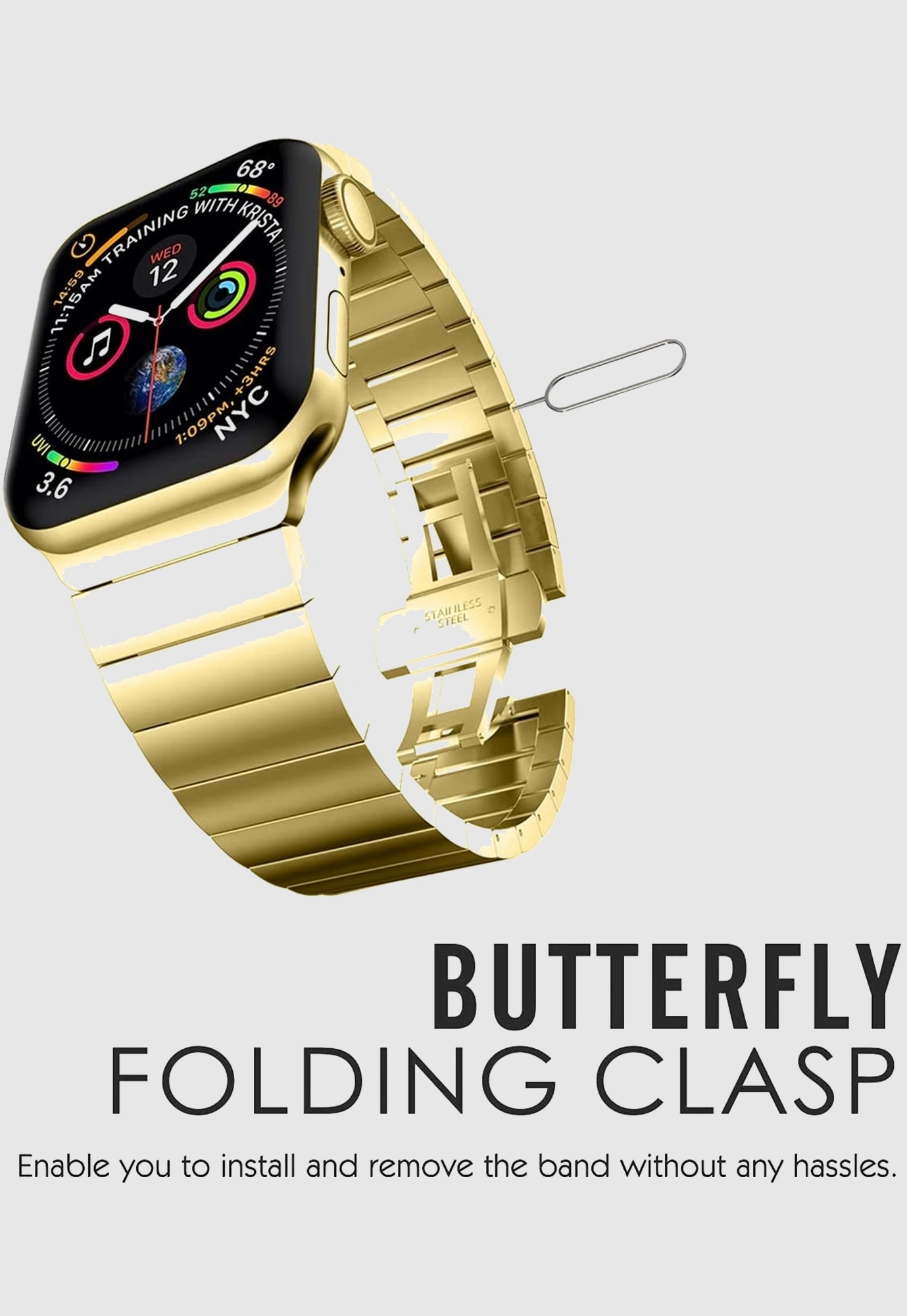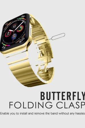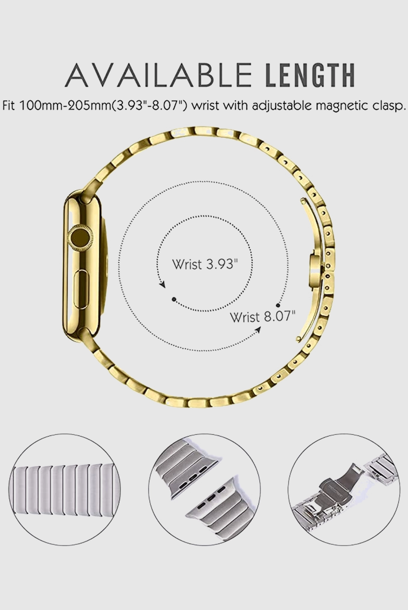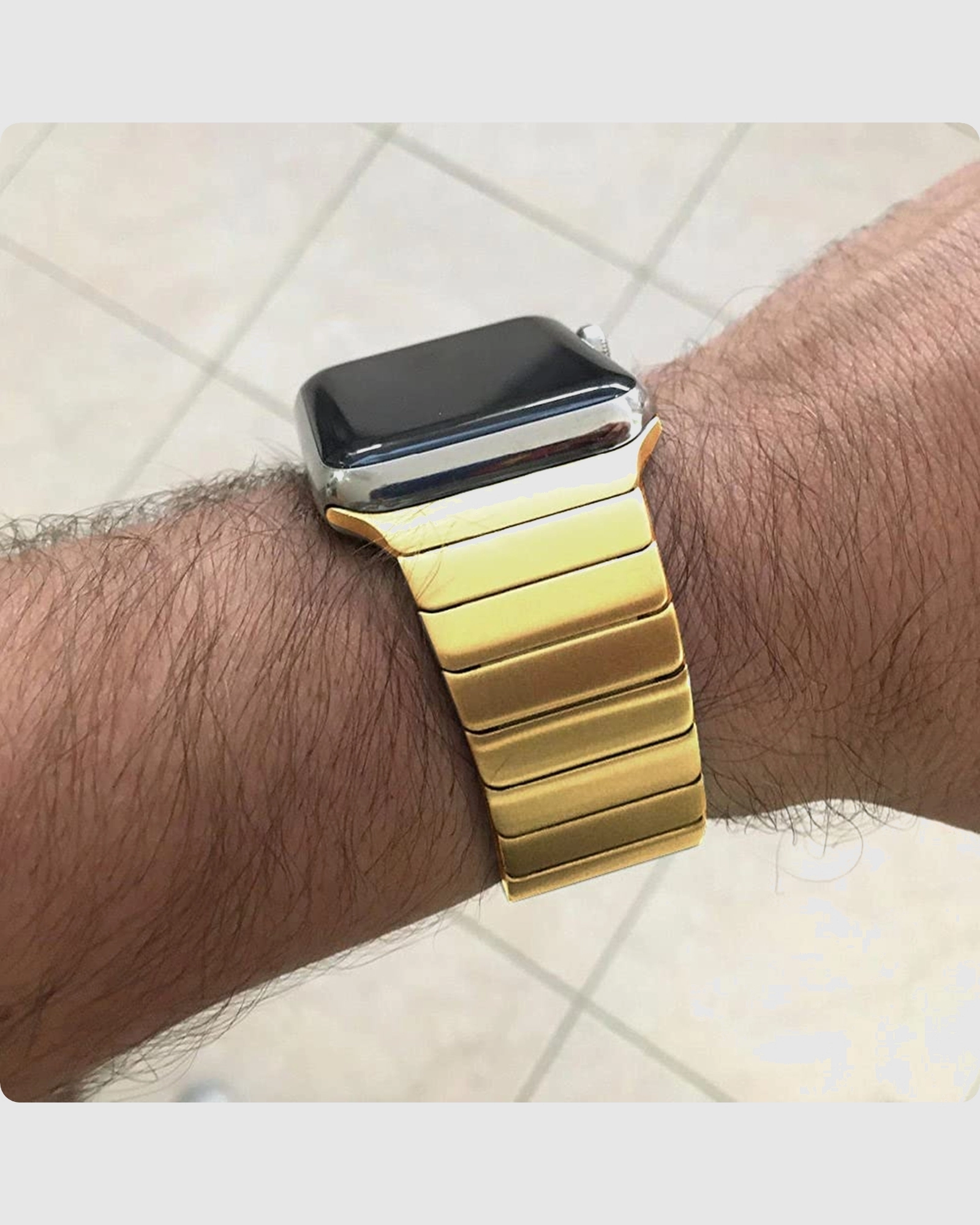 Elevate your Apple Watch with the stunning Gold Link Bracelet, crafted from premium stainless steel alloy. This luxurious bracelet features over 100 intricately designed components, showcasing precision machining that takes nearly ten hours to complete for a single band. The custom-made butterfly closure not only adds a touch of elegance but also ensures comfort by folding neatly within the bracelet. Perfect for both casual and formal occasions, this bracelet combines style and functionality, making it an ideal accessory for any Apple Watch enthusiast. Whether you’re dressing up for a night out or simply enhancing your everyday look, the Gold Link Bracelet is the perfect choice to complement your Apple Watch seamlessly. Make a statement and showcase your taste for luxury with this exquisite bracelet today!
