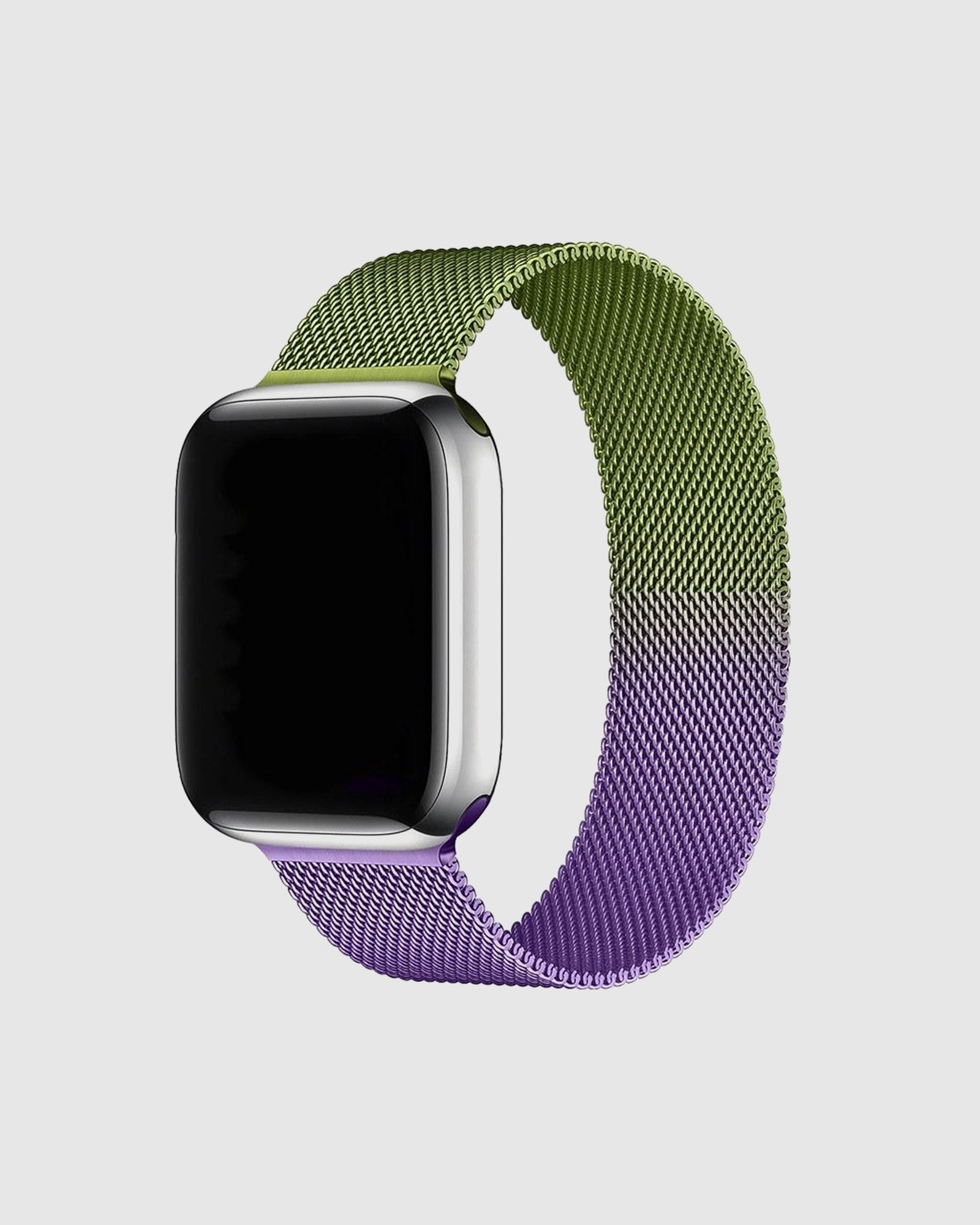 Elevate your style with the Gradient Green Purple Milanese Loop for Apple Watch. This stunning band, made from intricately woven stainless steel, showcases a vibrant gradient design that seamlessly blends shades of green and purple. Inspired by the original Milanese bands of the late 19th century, this loop offers a timeless, sophisticated look while providing ultimate comfort and flexibility on your wrist. The breathable, lightweight material makes it ideal for everyday wear, whether youre at the gym or out on the town. Its adjustable nature ensures a perfect fit for any wrist size, while the magnetic closure provides a secure yet stylish finish. Compatible with all Apple Watch sizes, this Milanese Loop is not just a watch band; its a fashion statement. Priced at just $39.95, add a touch of elegance and colour to your wrist with this unique accessory that complements any outfit. Whether youre purchasing for yourself or as a gift for someone special, this Gradient Green Purple Milanese Loop is sure to impress.
