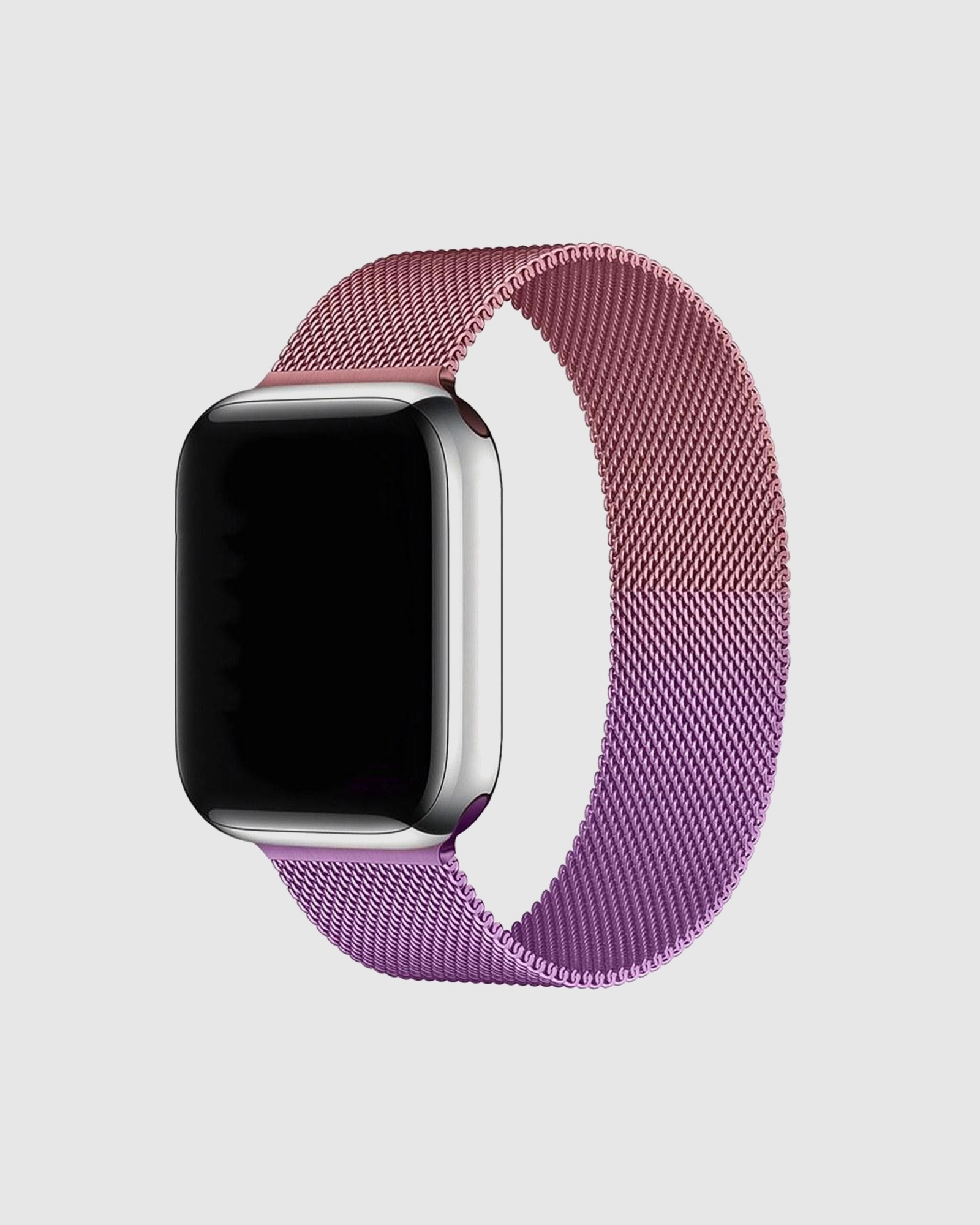Elevate your style with the Gradient Pink Purple Milanese Loop for Apple Watch. This ultra-sleek, intricately woven stainless-steel strap is designed to fit comfortably on your wrist while providing a stunning pop of colour. Inspired by the classic Milanese loop band first crafted in Milan during the late 19th century, this strap seamlessly blends tradition with modern aesthetics. The gradient shades of pink and purple create a unique and vibrant look, perfect for any occasion. Whether youre at work, at the gym, or enjoying a night out, this watch band adds a touch of elegance to your Apple Watch. Lightweight yet durable, its the ideal accessory for both style and functionality. Available at an affordable price of just $39.95, transform your Apple Watch with this eye-catching band today and make a statement wherever you go.