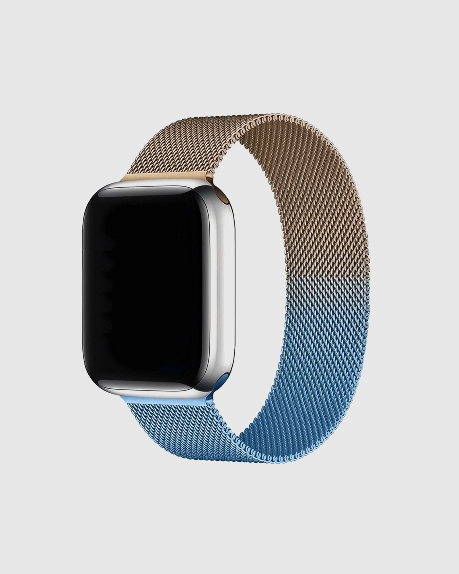 Elevate your Apple Watch with the stunning Gradient Retro Gold Blue Milanese Loop. This ultra-sleek band is crafted from intricately woven stainless steel, ensuring both durability and elegance. Drawing inspiration from the original Milanese design created in the late 19th century, this strap seamlessly combines vintage charm with modern functionality. Its unique gradient of gold and blue adds a pop of colour to your wrist, making it a versatile accessory for any occasion. Perfect for both casual and formal wear, the adjustable loop guarantees a snug fit, ensuring maximum comfort all day long. Whether youre at the office or out with friends, this Milanese Loop provides a sophisticated touch, while also protecting your Apple Watch. Make a statement and redefine your watch game with the Gradient Retro Gold Blue Milanese Loopan exquisite blend of style and craftsmanship at an affordable price.