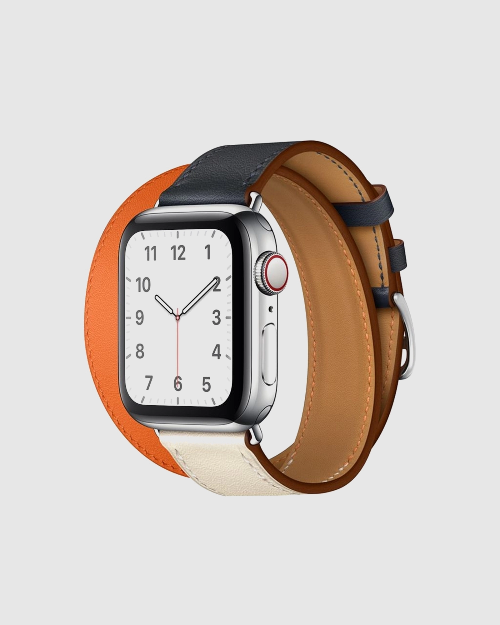 Stylish Indigo/Craie/Orange Double Tour Leather Band for Apple Watch. A luxurious and unique accessory that wraps twice around your wrist.