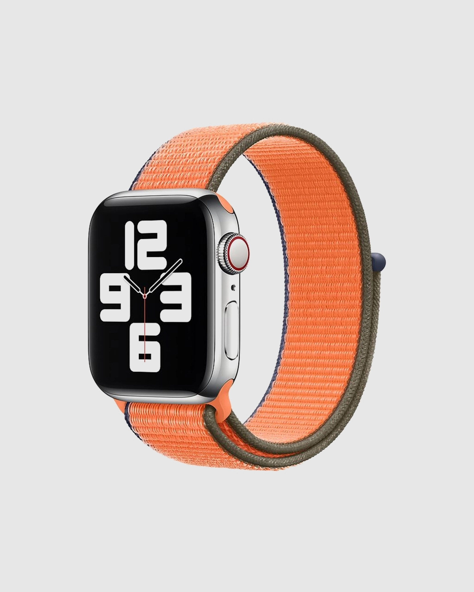 This soft, ultra-comfortable and lightweight Kumquat Sport Loop For Apple Watch is a great choice for workouts, physical activities, and every day wear. Our Sport Loop Band is impervious to both tears and abrasions. The comfortable Nylon fabric is machine-washable and thus maintain perfection for everyday activities.nn nnSizing Guide for Sport Loop for Apple Watchn