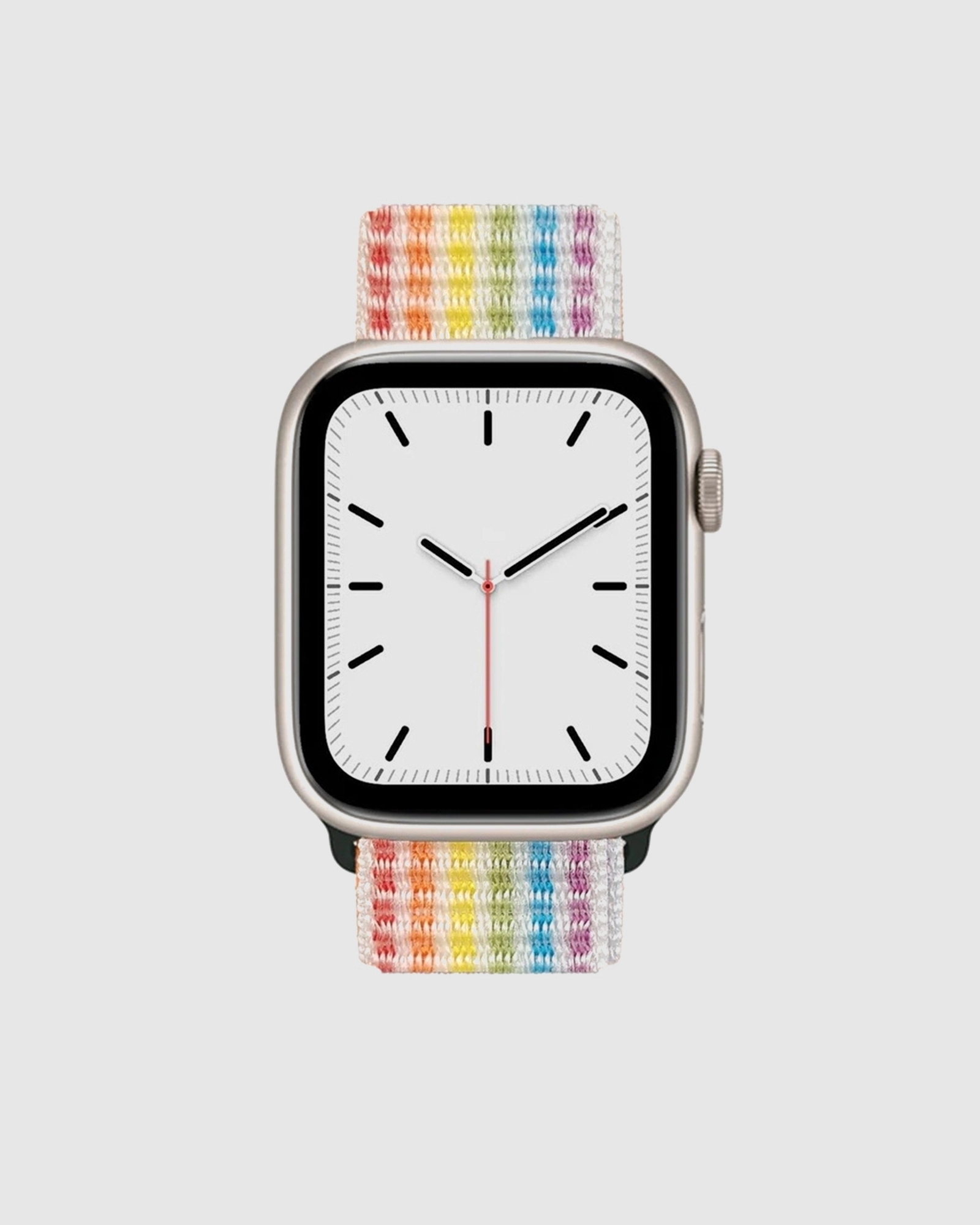 Introducing the Light Pride Sport Loop Band for Apple Watch the ultimate accessory for fitness enthusiasts and everyday users alike. This band combines comfort and durability, crafted from ultra-soft, lightweight nylon thats perfect for workouts, sports activities, or casual wear. Engineered to withstand the rigours of daily life, it resists both tears and abrasions, ensuring it looks great wear after wear. With machine-washable convenience, maintaining its pristine appearance is a breeze. Choose the perfect size for your wrist: 38mm/40mm fits wrists from 125mm to 200mm, while 42mm/44mm accommodates wrists from 140mm to 220mm. Whether you’re hitting the gym or strolling through the park, the Light Pride Sport Loop Band is designed to provide maximum comfort and style. Embrace your individuality with this vibrant, multi-coloured design that showcases your pride and personality. Elevate your Apple Watch experience and make a statement today with this must-have accessory.