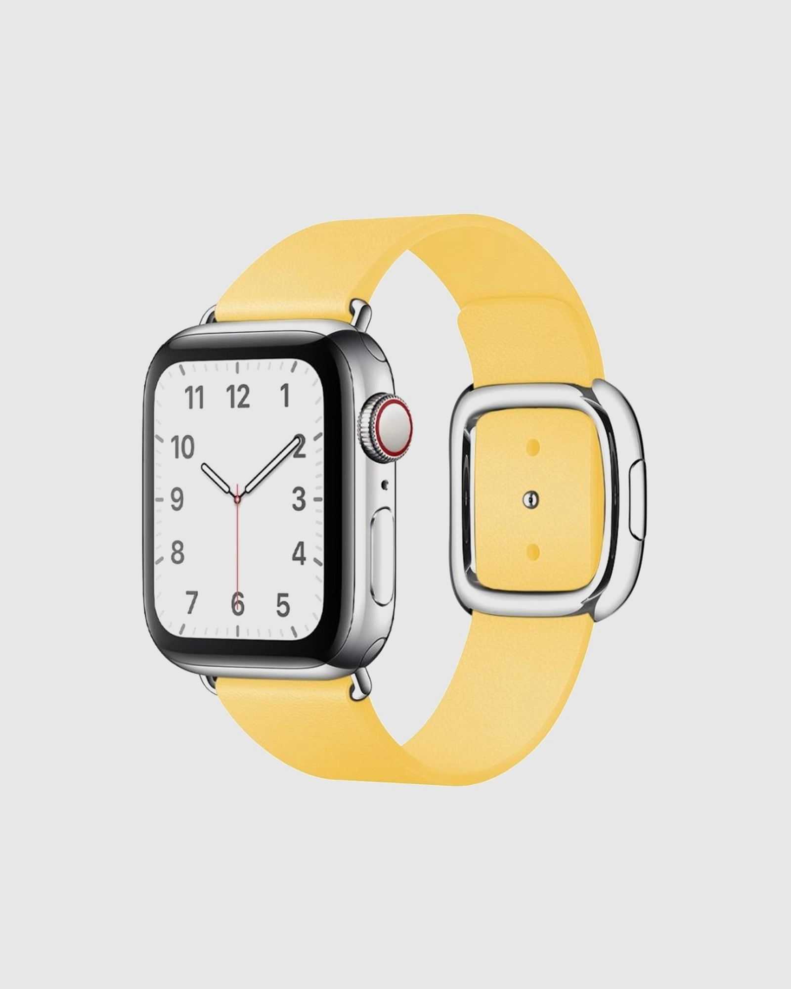 Elevate your Apple Watch experience with our Marigold Modern Buckle. Crafted from premium top-grain leather, it’s lightly milled and tumbled for a luxurious feel that stands out. The modern-style buckle design cleverly conceals a two-piece magnetic closure, ensuring both style and security. Perfect for any occasion, the Marigold Modern Buckle provides a refined look while maintaining comfort and durability. Whether you’re dressing up for a night out or keeping it casual, this band adds a touch of sophistication to your wrist. Available in a variety of sizes, its compatible with all Apple Watch models. Make a statement with your Apple Watch and enjoy the combination of elegance and practicality with the Marigold Modern Buckle. Discover the perfect accessory that complements your personal style while ensuring effortless usability. Enhance your everyday wear while enjoying the luxurious texture and innovative design of this stunning watch band.