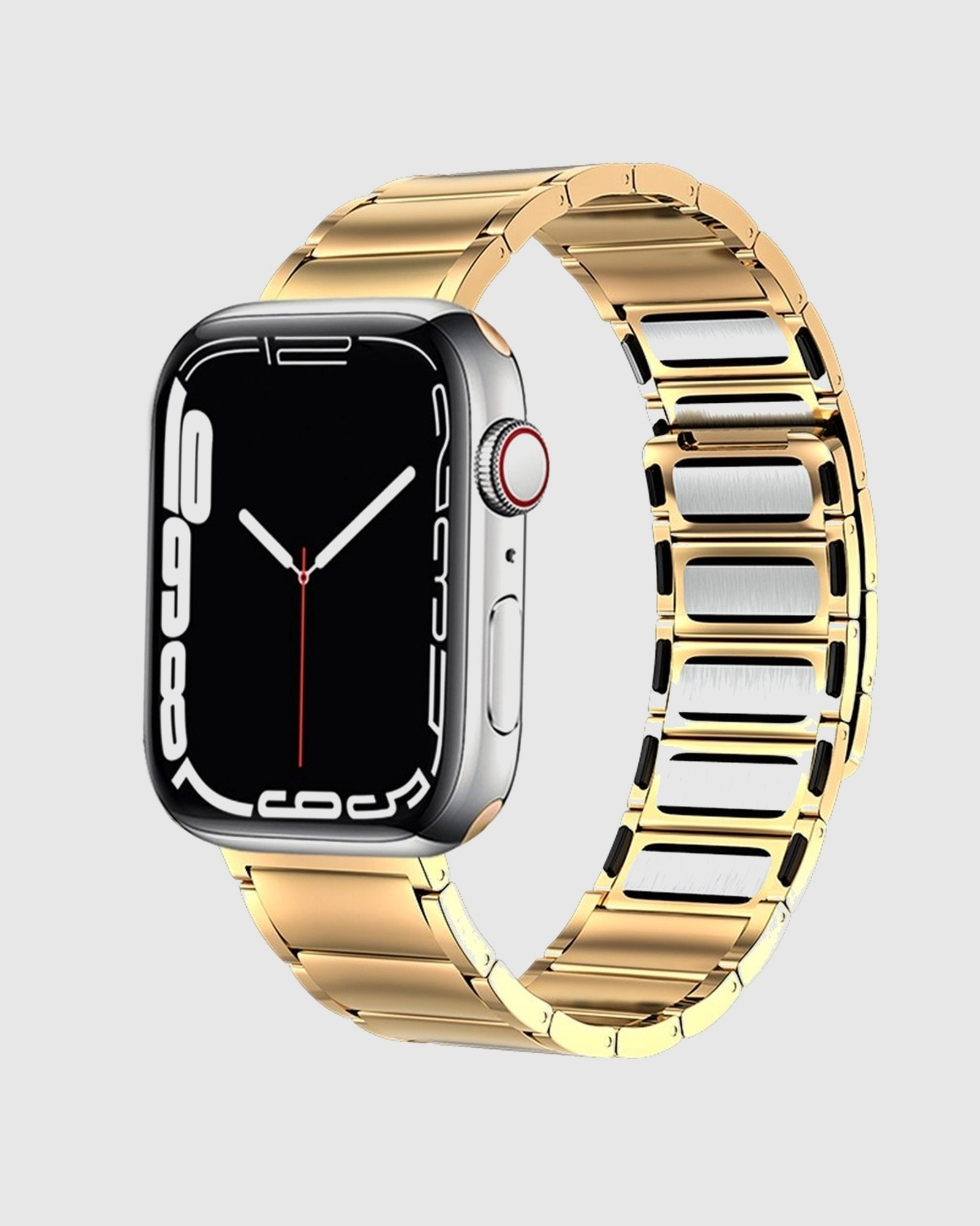 Transform your Apple Watch with the luxurious Maximus Magnetic Stainless Steel Band in Gold. Durable, elegant, and secure—perfect for any occasion.