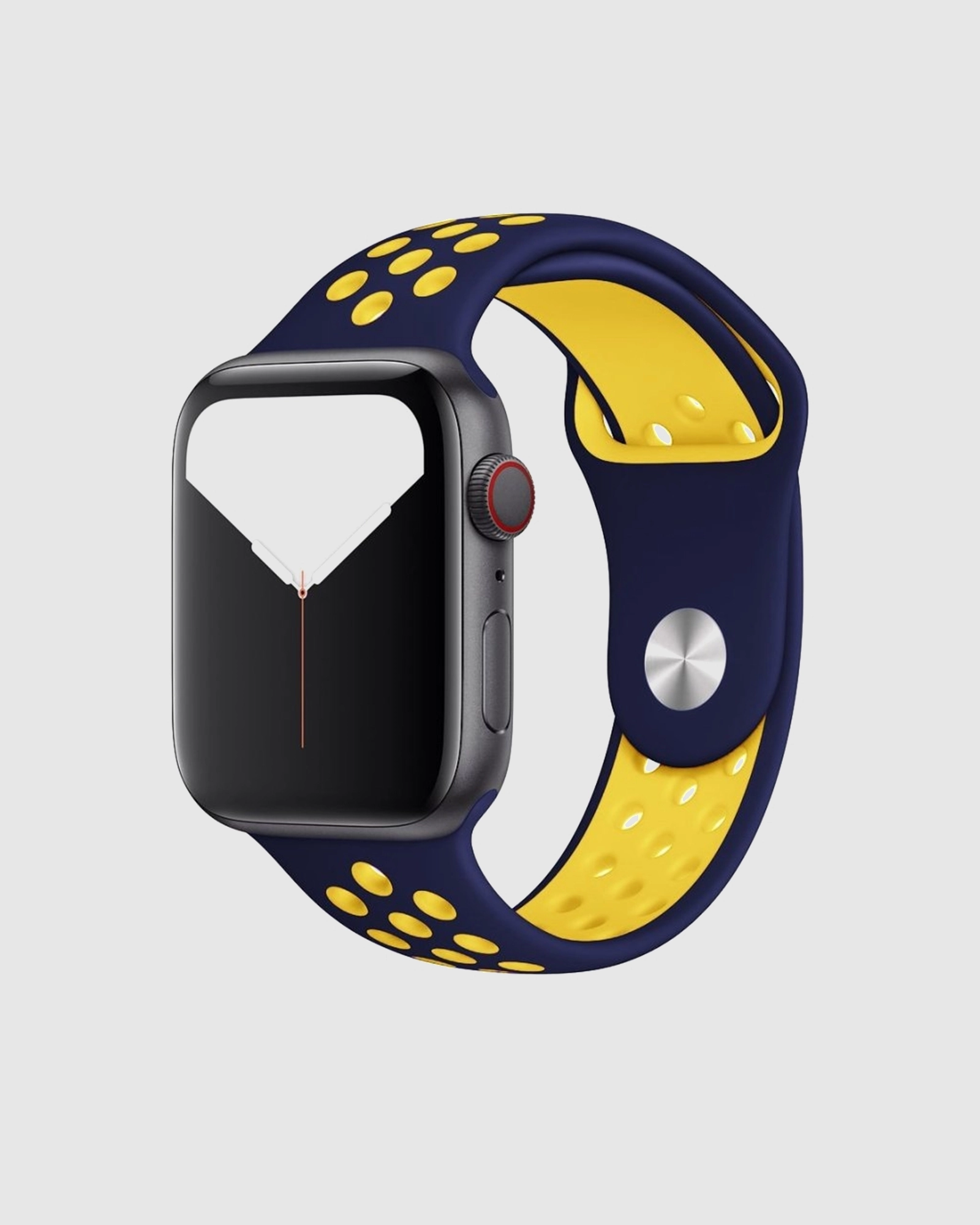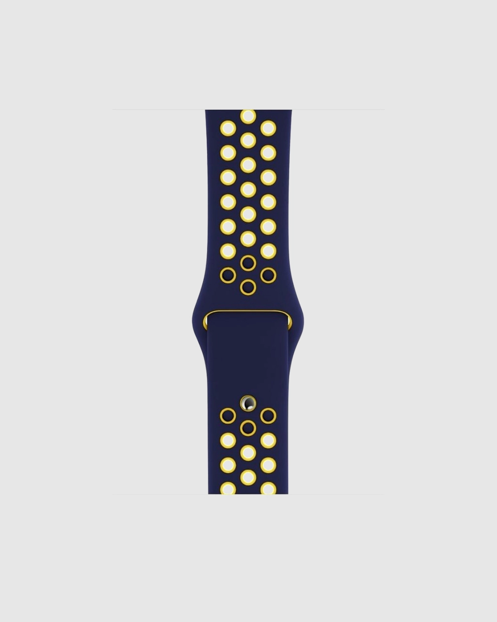Elevate your Apple Watch experience with the Midnight Blue/Yellow Sport Band Active. Crafted from high-performance fluoroelastomer, this band is designed for durability and comfort. Its compression-moulded perforations enhance breathability, making it perfect for workouts or daily wear. The sleek, dense material drapes elegantly across your wrist, providing a soft touch next to your skin. An innovative pin-and-tuck closure ensures a secure and tailored fit, available in multiple sizes to suit all wrist types. Whether you’re hitting the gym or heading out for a casual outing, this vibrant two-tone band adds a stylish flair to your look. Choose the Midnight Blue/Yellow Sport Band Active for both functionality and fashion – the perfect companion for your Apple Watch.