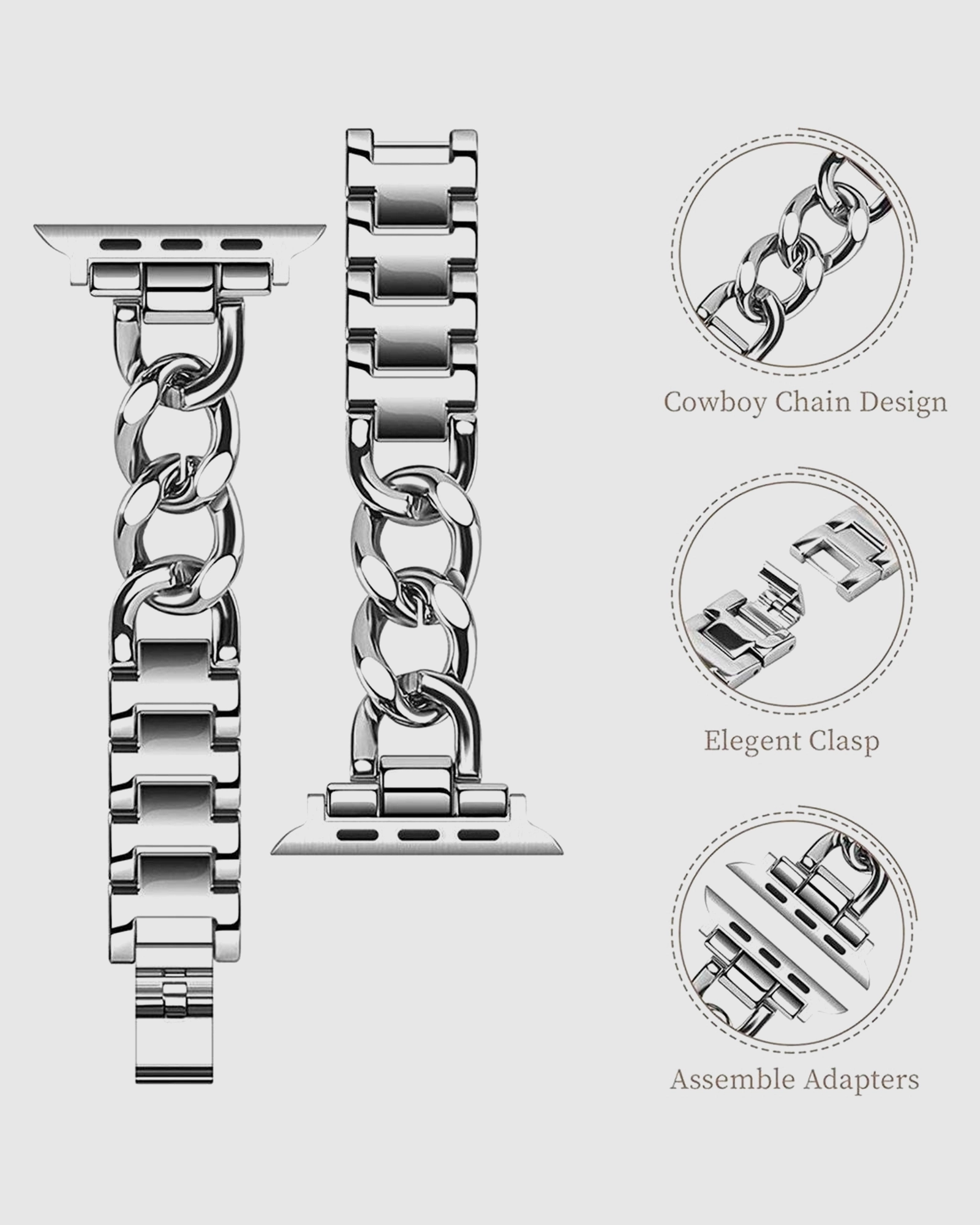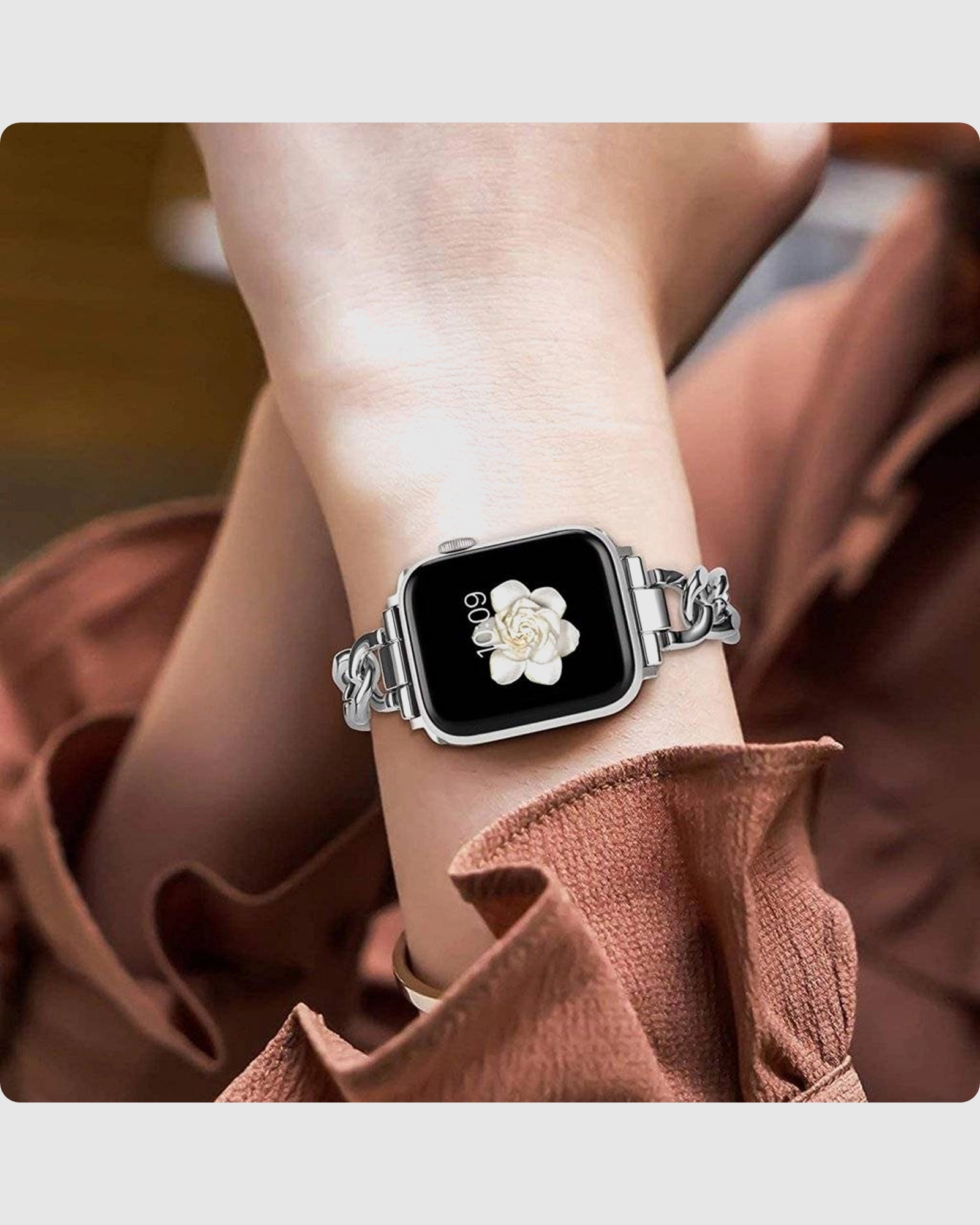 Elevate your Apple Watch experience with the stunning Monte Carlo Bracelet Band in Silver. This eye-catching band is designed to dazzle, featuring a unique link-bracelet design that strikes the perfect balance between sophistication and comfort. Crafted from high-quality stainless steel, it not only maintains its shine but also provides lasting durability. Whether you’re dressing up for a formal occasion or adding a touch of elegance to your casual attire, this bracelet band makes a statement. The adjustable sizing ensures a perfect fit for wrist sizes ranging from 140mm to 220mm, so you can enjoy all-day comfort. With proper care, including keeping it dry and cleaning it promptly after exposure to moisture, this accessory will remain a standout piece for years to come. Ideal for anyone looking to personalise their Apple Watch with a stylish, yet practical, touch, the Monte Carlo Bracelet Band is more than just a watch strap; its a fashion statement that complements any outfit. Upgrade your wrist game and showcase your unique style today with this must-have accessory for Apple Watch enthusiasts.