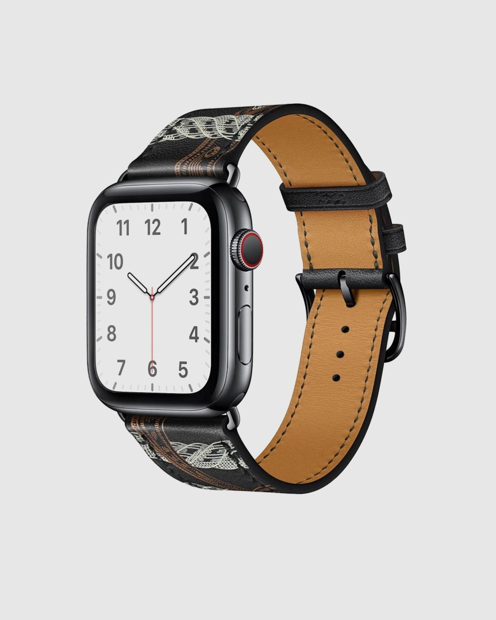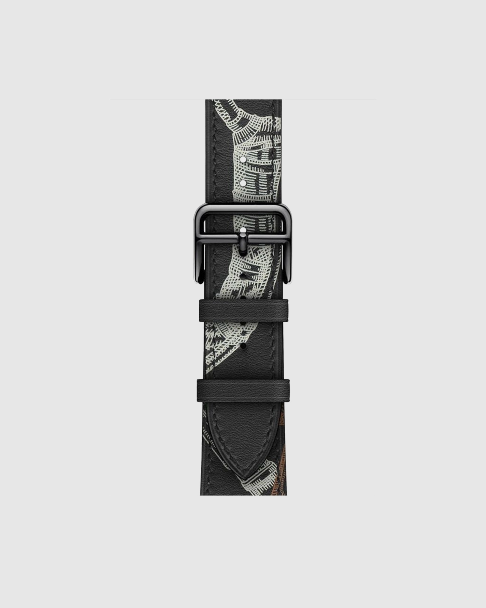 Transform your Apple Watch with the Noir All-Over Print Single Tour Leather band. This exquisite accessory is crafted from premium leather, ensuring both durability and luxury. Featuring striking all-over print and 316 Graded Stainless Steel buckles and lugs, this band offers a contemporary twist on classic design, making it perfect for any occasion. Its stylish appearance instantly elevates your outfit, giving it a high-end Parisian vibe. Whether for casual or formal events, this band caters to both style and comfort. Add the Noir All-Over Print band to your collection and experience the perfect blend of elegance and functionality for your smartwatch.