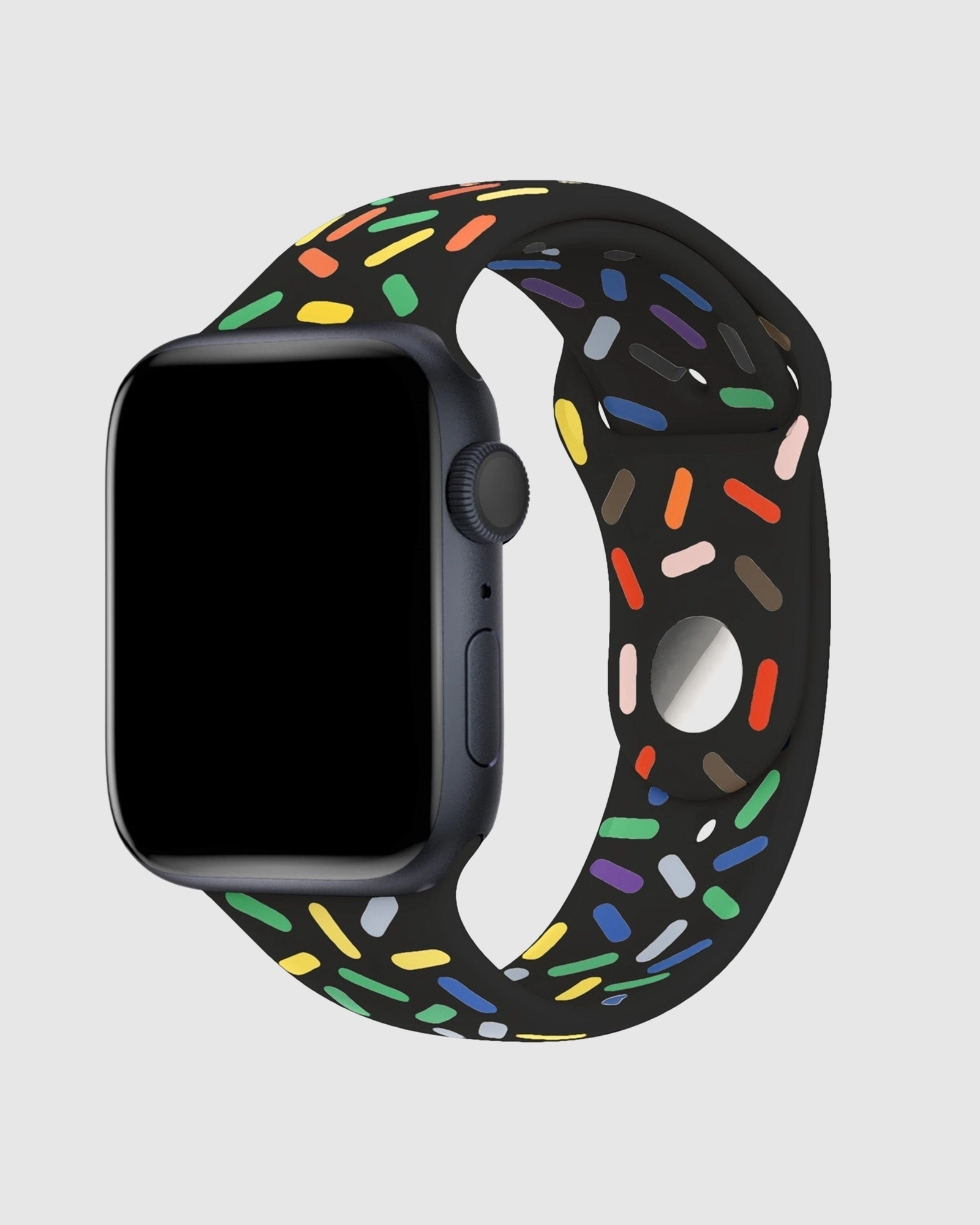Celebrate pride while enjoying the perfect blend of style and comfort with the Pride Sport Band for Apple Watch in Black. Crafted from a custom-developed, high-performance fluoroelastomer, this band is both durable and robust yet surprisingly soft against the skin. The smooth, dense material ensures an elegant drape across your wrist, making it suitable for all-day wear. With its innovative pin-and-tuck closure, it guarantees a secure and clean fit, adapting perfectly to your wrist size. Available in various sizes for both the 38mm/40mm and 42mm/44mm models, this band caters to a range of wrist measurements. Whether you’re at a workout session or enjoying a casual day out, the Pride Sport Band adds a touch of sophistication to your Apple Watch while proudly showcasing inclusivity. Join the movement, express your individuality, and elevate your smartwatch with this stylish accessory that makes a statement wherever you go.