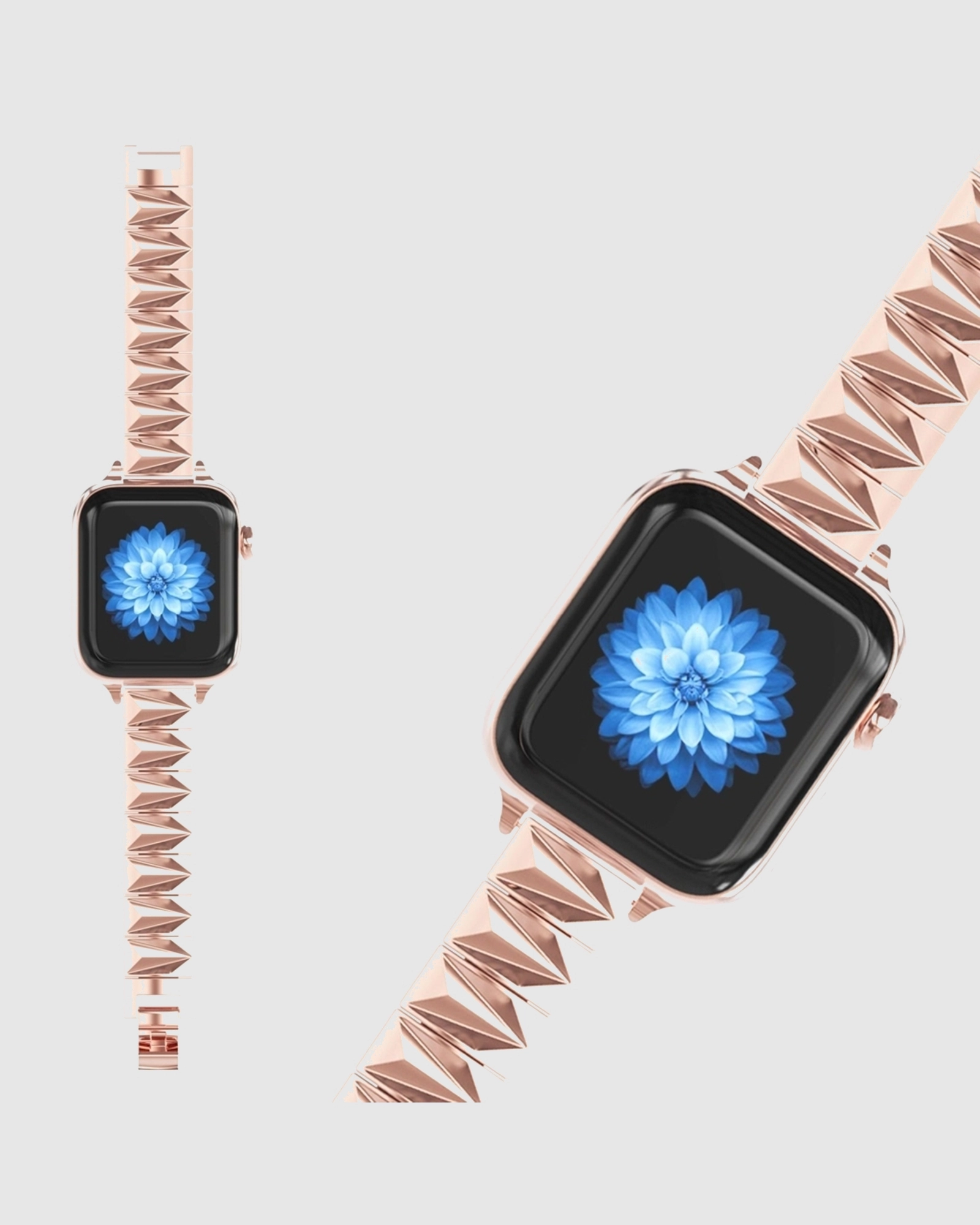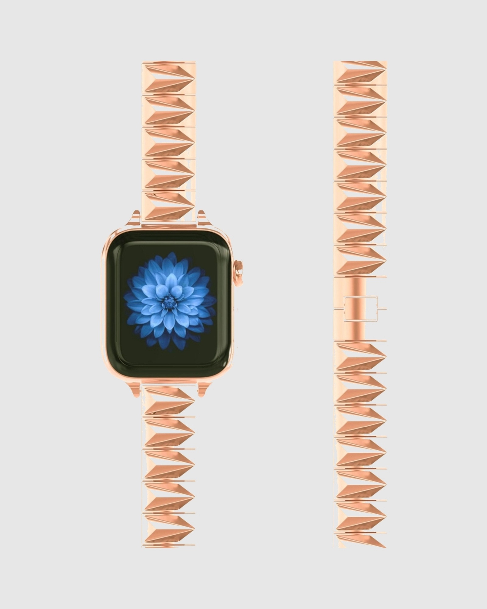 Elevate your Apple Watch with the stunning Pyramid Bracelet Band in Rose Gold. This luxurious accessory dazzles with its unique pyramid designs, radiating style at every angle. Crafted from high-quality stainless steel, this band combines comfort and elegance, ensuring it sits flat against your wrist for all-day wear. Designed for versatility, it is perfect for both casual outings and formal occasions. With an adjustable fit suitable for various wrist sizes, you can enjoy a customisable experience tailored to you. Remember to care for your band by cleaning it with a cloth after exposure to moisture, as it is not water-resistant. Transform your watch into a statement piece with the Pyramid Bracelet Band, the perfect fusion of style and practicality.