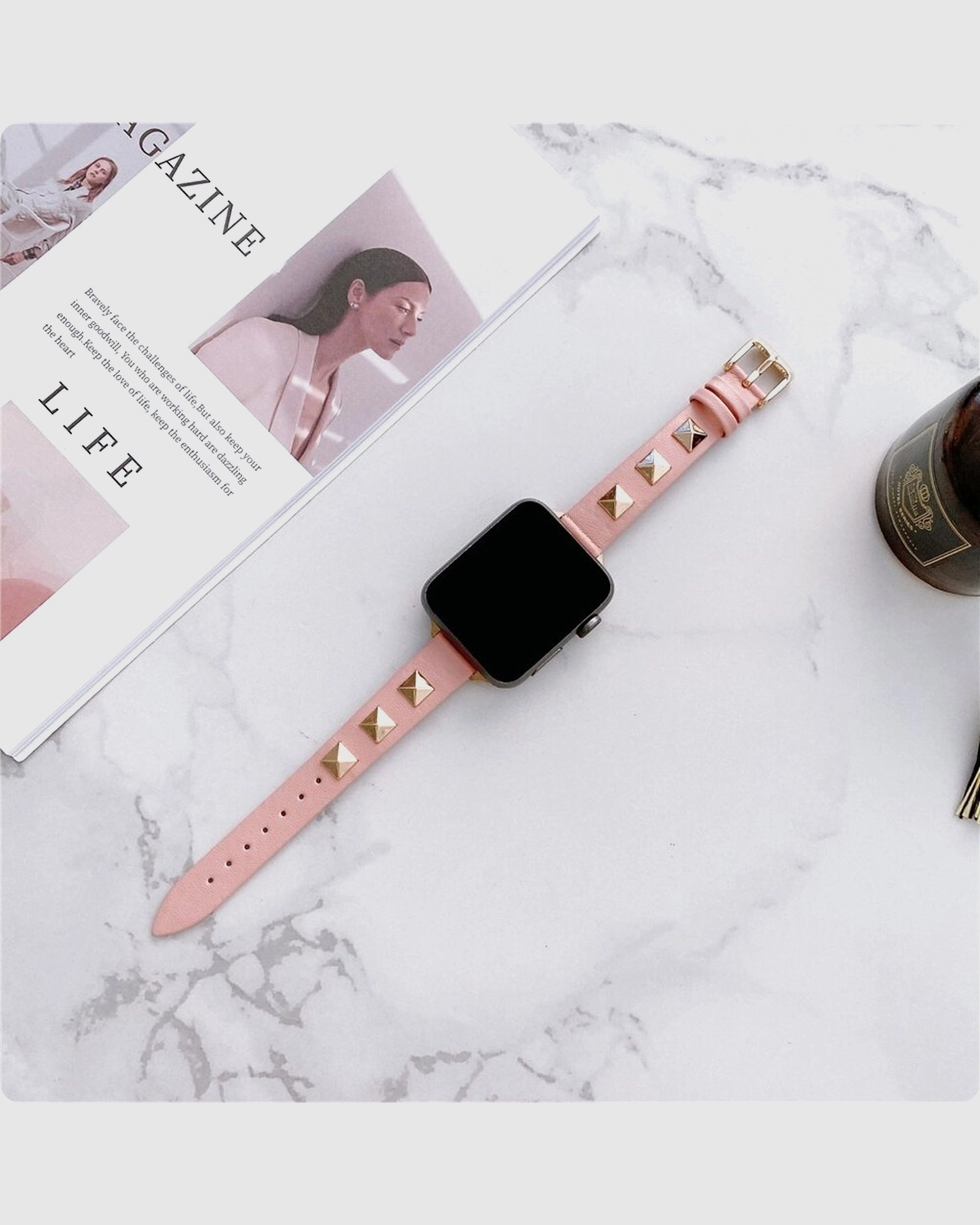 Rockstar Slim Leather Band with Rose Gold Studs for Apple Watch in Pink