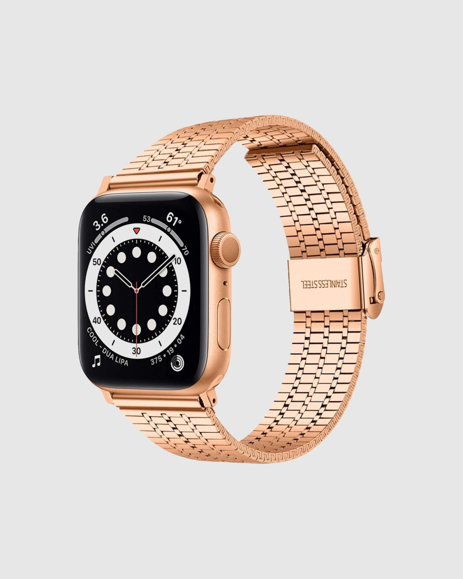 Elevate your style with the exclusive Rose Gold Matrix Stainless Steel Band for Apple Watch, uniquely designed and crafted by AWS Australia. This luxurious band combines a solid stainless steel construction with a stunning rose gold finish, making it the perfect accessory to complement any outfit. The bold design features a distinctive matrix pattern that sets it apart from ordinary watch bands, ensuring you stand out in any setting. Suitable for all Apple Watch models, this band not only promises durability and comfort but also adds a touch of elegance to your wrist. Transform your Apple Watch into a statement piece that reflects your personality and style. At just $79, this exclusive band is an investment in sophistication and functionality. Dont miss out on the opportunity to own a band that truly embodies luxury and individuality.