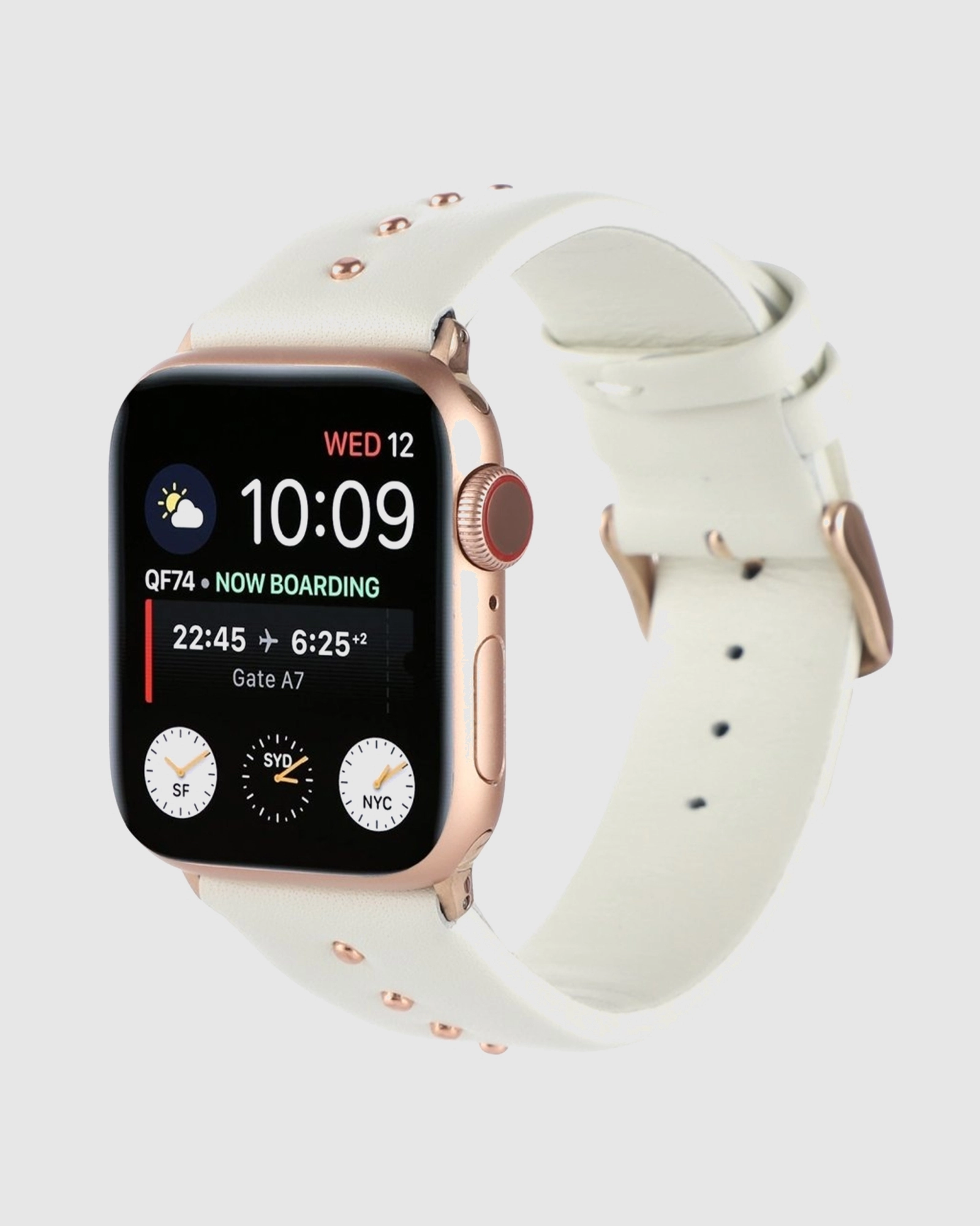 Elevate your Apple Watch with the Shakira Leather Band featuring stunning gold studs in a chic beige shade. Crafted from premium quality leather, this band combines luxury and durability, ensuring comfort while making a bold fashion statement. The intricate gold stud detailing adds a touch of elegance, making it perfect for both casual and formal occasions. This versatile band is designed to perfectly fit various Apple Watch sizes, allowing for a seamless look that speaks to your unique style. Easily adjustable, the Shakira Leather Band ensures a snug fit for all-day wear. Whether you’re dressing up for a night out or simply want to enhance your everyday look, this stylish band is the ideal accessory. At just AU$59.95, own a piece that not only complements your watch but also showcases your personality. Upgrade your smartwatch experience today and enjoy the perfect blend of function and high-style with the Shakira Leather Band with Gold Studs.