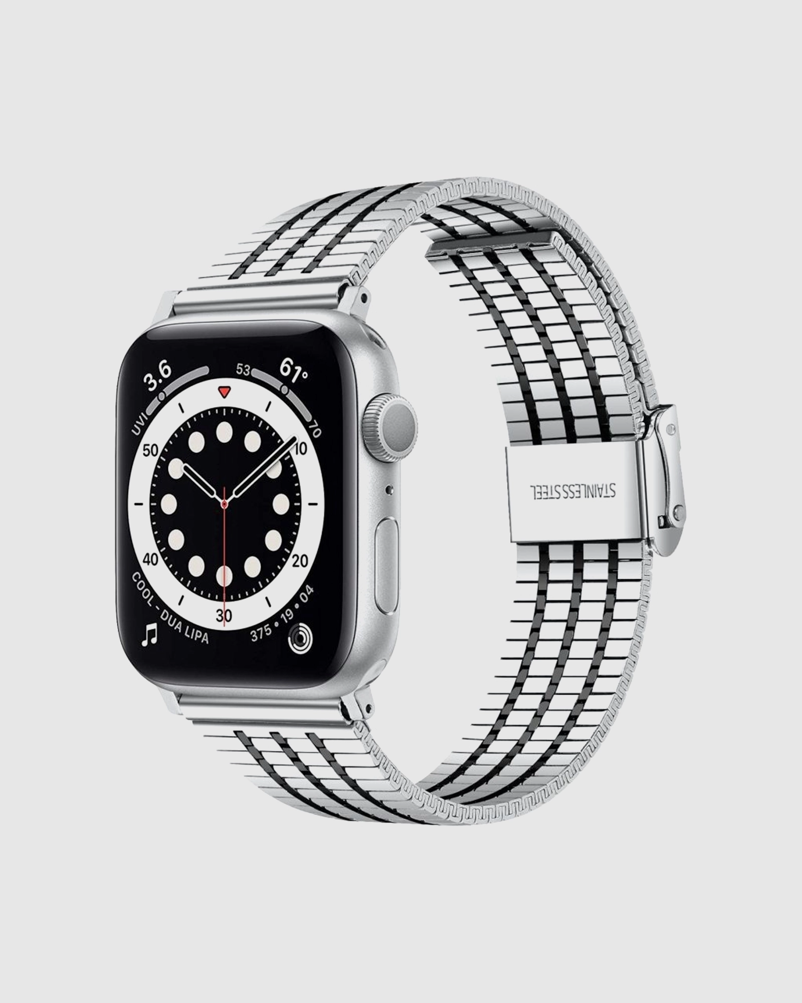 Introducing the Silver Black Matrix Stainless Steel Band for Apple Watch, designed exclusively for AWS Australia. This stunning band boasts a unique matrix pattern that sets it apart from conventional designs. Crafted from premium stainless steel, it ensures a robust and luxurious feel that perfectly complements your Apple Watch. The striking silver and black colour combination not only enhances the watch’s aesthetic but also provides a contemporary edge to your overall style. Whether youre heading to a business meeting or enjoying a casual day out, this band elevates any outfit. Plus, it is adjustable, ensuring a comfortable fit for every wrist size. Upgrade your Apple Watch experience with this fashionable accessory that marries durability with elegance. Dont miss your chance to own a unique piece that reflects your personality and taste. Available for just $79, this band is a must-have for every Apple Watch enthusiast looking for something truly special.