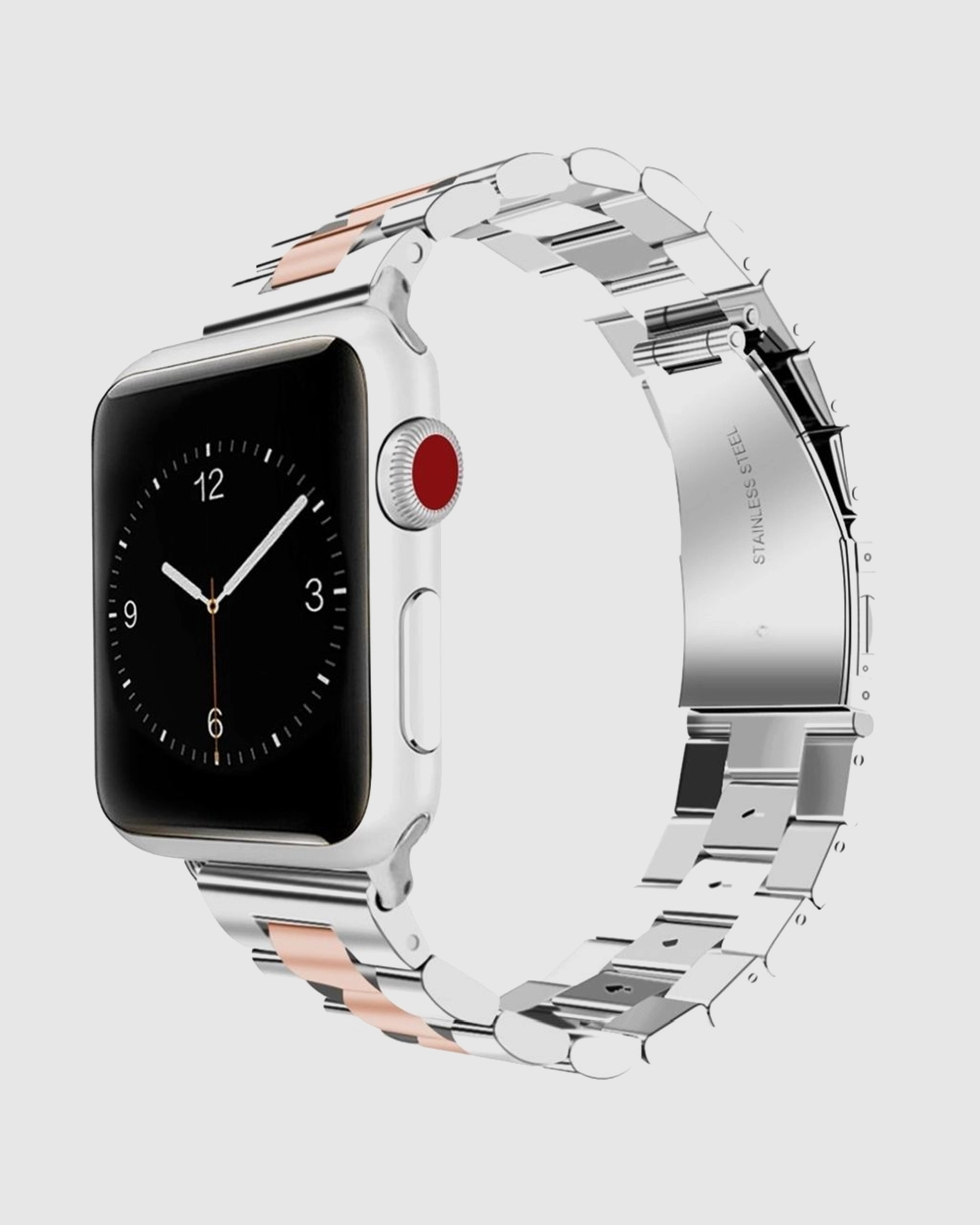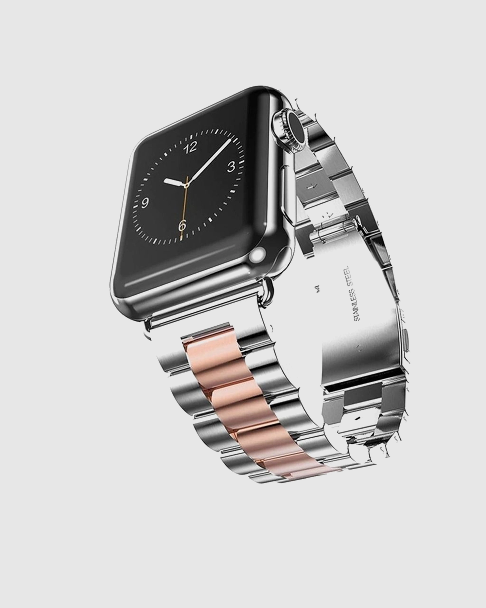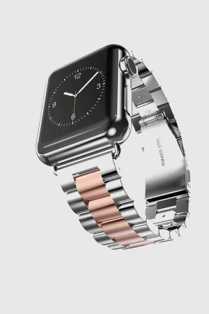 Upgrade your Apple Watch with our Silver Rose Gold Stainless Steel Band, a perfect blend of elegance and durability. Crafted from top-quality stainless steel, this band showcases exquisite craftsmanship that elevates the style of your smartwatch. Ideal for both casual and formal occasions, this strap is designed for those who demand sophistication in every detail. The stunning silver and rose gold tones seamlessly complement your Apple Watch, elevating its aesthetic appeal while ensuring a comfortable fit. Whether youre in the office or enjoying a night out, this band makes your watch look noble and stylish. Dont settle for average; enhance your wearable tech with this chic accessory today and make a statement wherever you go.