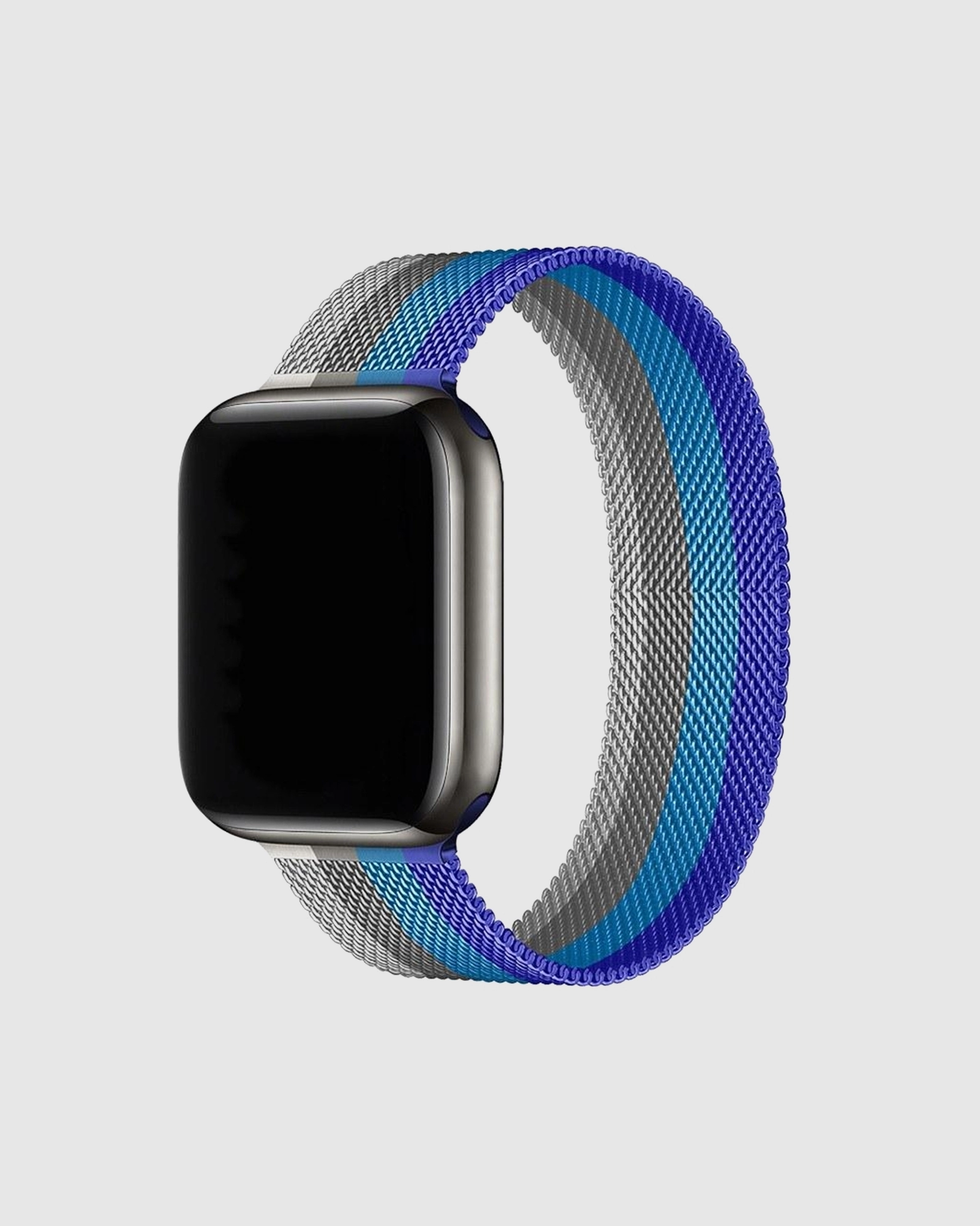 Elevate your Apple Watch style with the Stripe Dark Blue with Sapphire Blue Off White Milanese Loop. Crafted from ultra-sleek, intricately woven stainless steel, this strap seamlessly blends form and function. The original Milanese design offers a flexible fit, ensuring all-day comfort while making a statement. Its exquisite dark blue and sapphire accents perfectly complement any outfit, whether you’re dressing up for a night out or keeping it casual. With easy installation and a secure fit, this Milanese loop is ideal for those who appreciate both style and practicality. At just $39.95, enhance your Apple Watch with a touch of Italian elegance today.