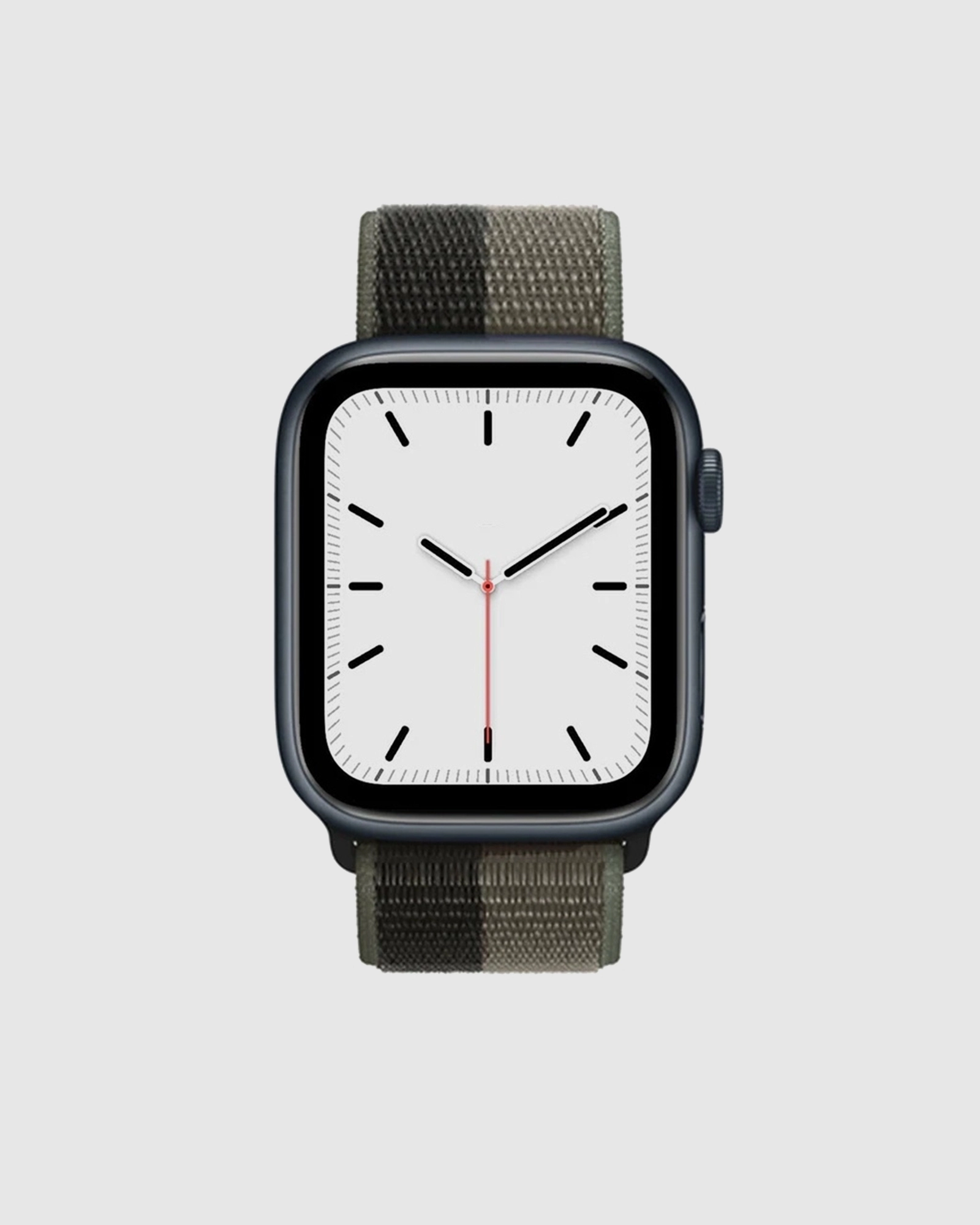 Discover the Tornado / Grey Sport Loop Band for Apple Watch—comfortable, durable, and perfect for workouts or everyday wear. Machine-washable and available in multiple sizes.
