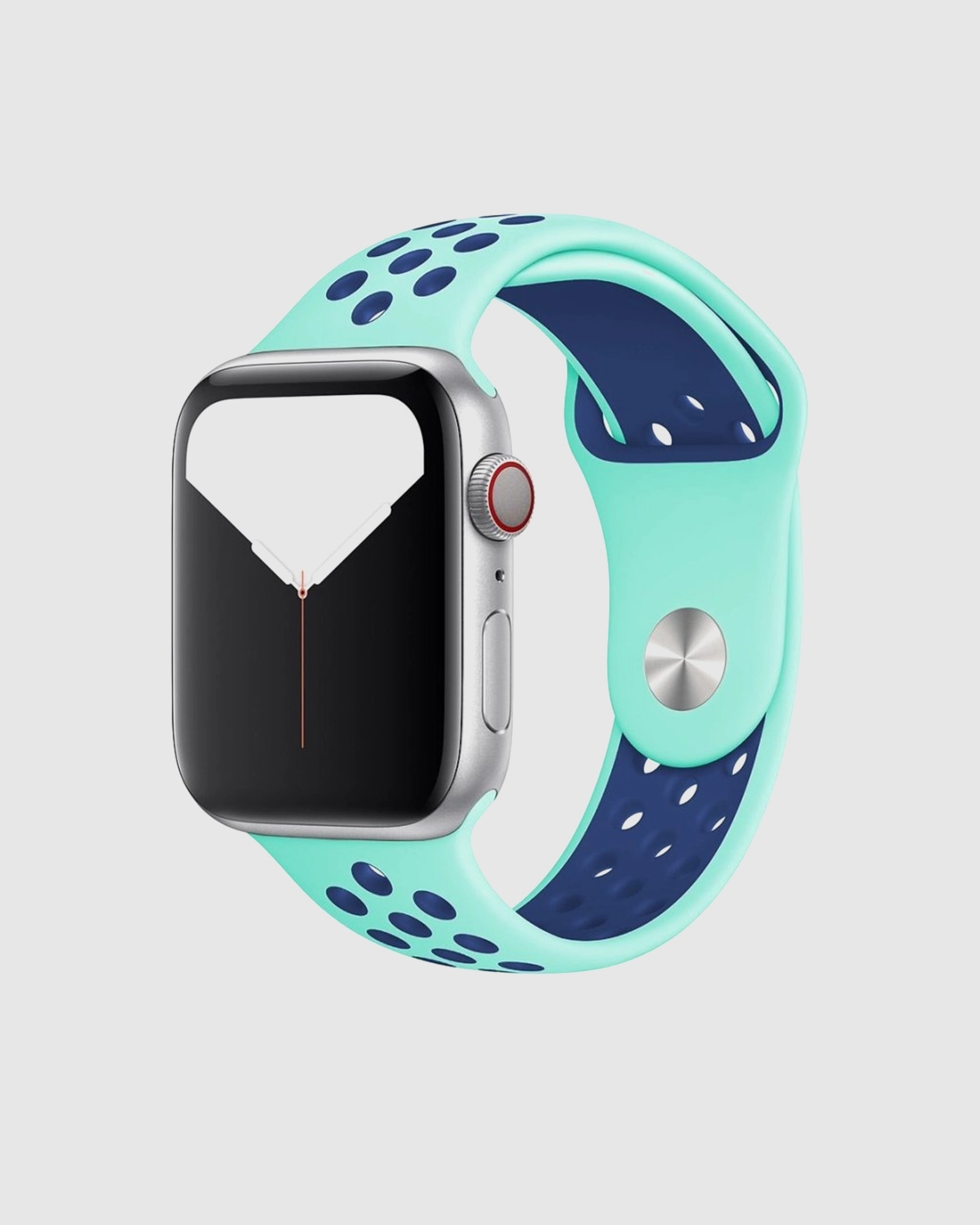 Enhance your Apple Watch experience with the Turquoise/Midnight Blue Sport Band Active, designed for both style and performance. Crafted from a high-performance fluoroelastomer, this band features compression-moulded perforations that provide exceptional breathability, making it ideal for every activityfrom workouts to casual wear. The material is not only durable and strong but also surprisingly soft against your skin, ensuring all-day comfort. With its innovative pin-and-tuck closure, you’ll enjoy a secure fit that compliments your wrist perfectly. Available in various sizes to suit most wrist measurements, this stylish two-tone band adds a pop of colour to your look while maintaining functionality. Choose the Turquoise/Midnight Blue Sport Band Active for a seamless blend of practicality and eleganceperfect for any occasion.