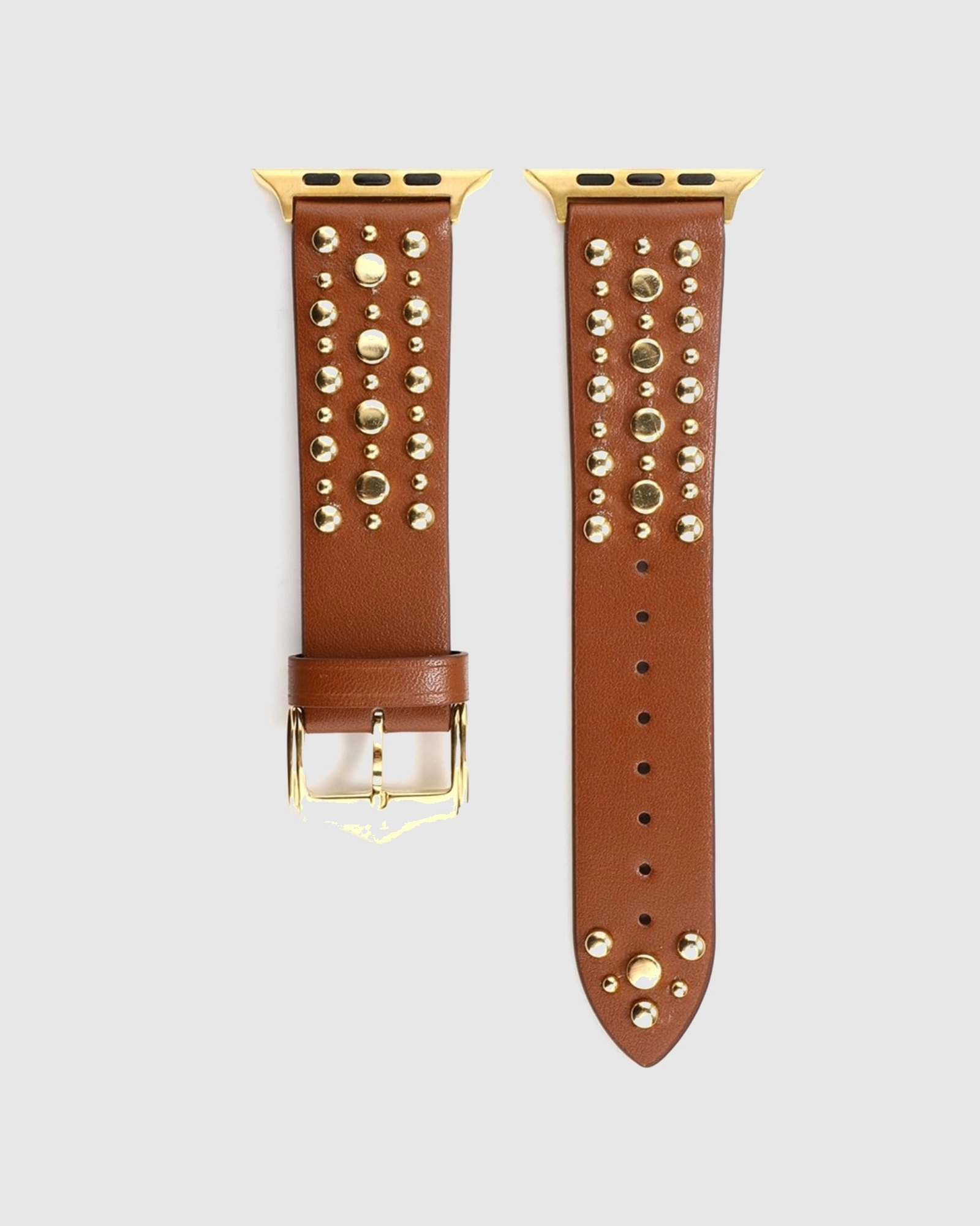 Transform your Apple Watch with the Venus Leather Band featuring Gold Studs in Dark Brown for a stylish and durable accessory.