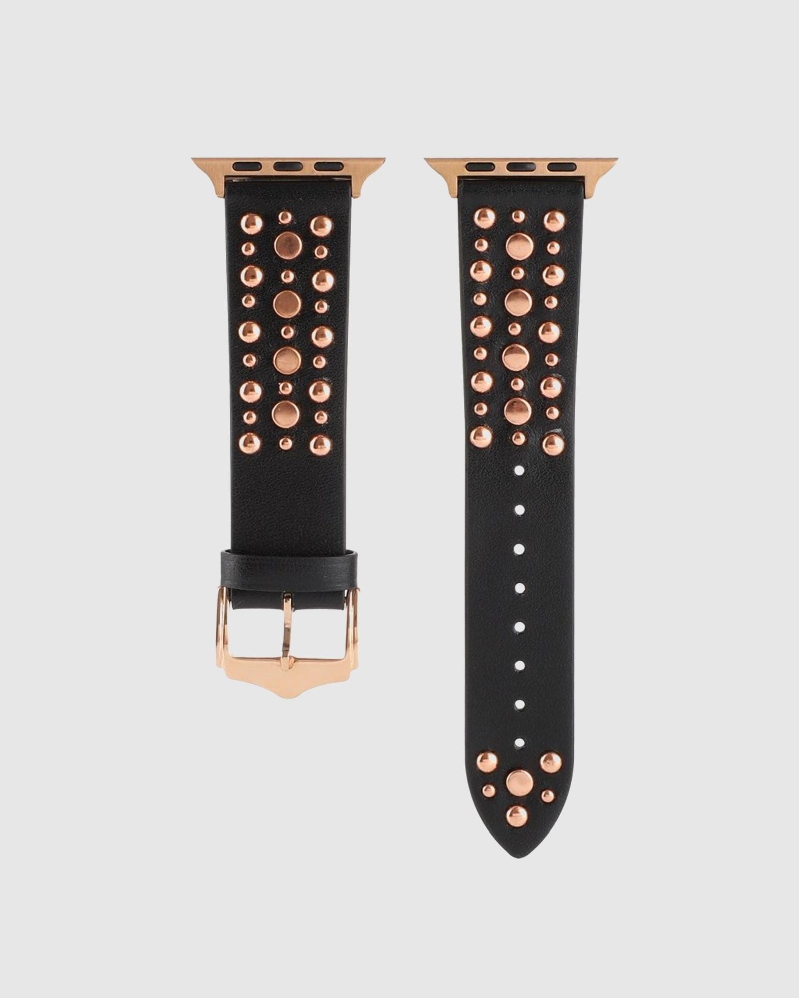 Venus Leather Band with Rose Gold Studs for Apple Watch in Black