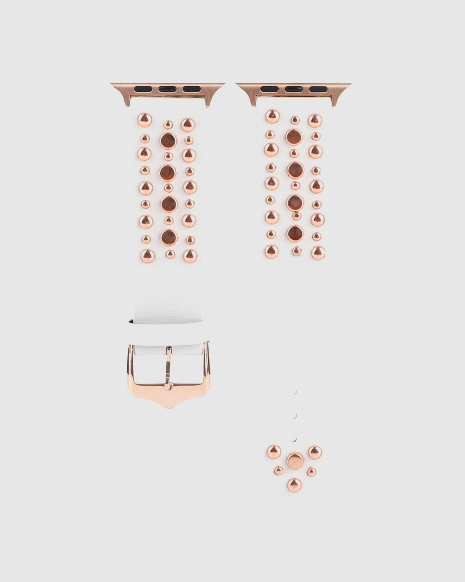 Elevate your style with the Venus Leather Band with Rose Gold Studs for Apple Watch in White. This exquisite band seamlessly combines durability and elegance, ensuring your Apple Watch stands out in any setting. The soft leather material cradles your wrist in comfort, while the striking rose gold studs add a touch of glamour and sophistication. Perfect for both casual outings and formal occasions, this band allows you to express your unique personality. Whether you’re dressing up for a night out or keeping it chic during the day, the Venus band is the ideal accessory to enhance your Apple Watch. Don’t settle for ordinary; add a pop of sparkle and unleash your inner Venus. Grab yours today and transform your wrist game for just $59.95!